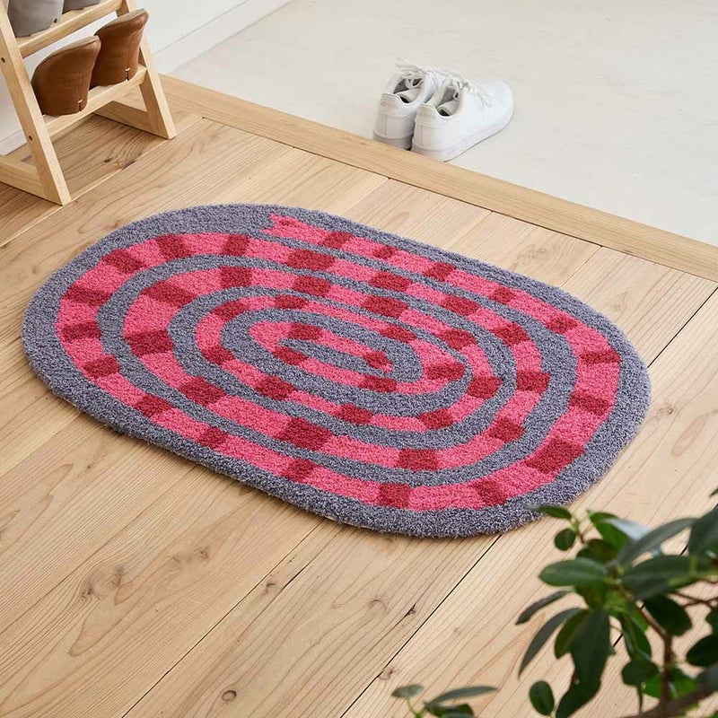 少し大きめのマットだからこそ、玄関に敷いた時のインパクトは抜群。愛らしいアニマルたちのデザインが、訪れる人々の心を和ませ、会話のきっかけにもなるでしょう。「可愛い!」思わず声に出したくなる、手描きの柔らかなテキスタイルデザインは空間のアクセントとして、玄関を明るく華やかに彩りを添えてくれます。