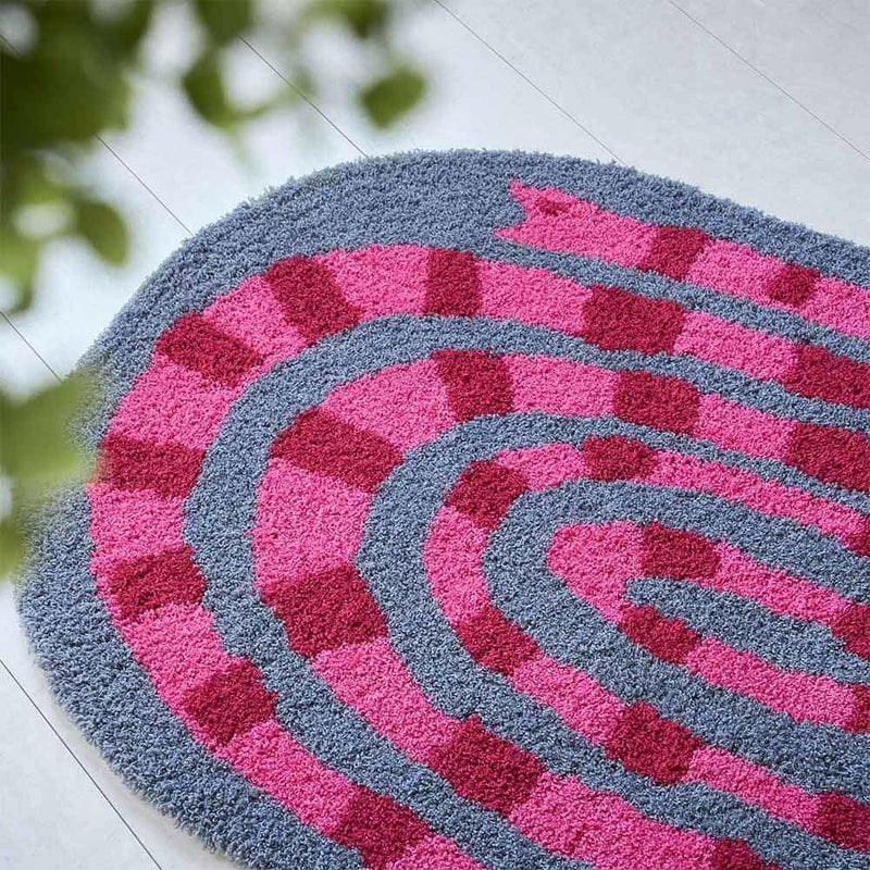 テキスタイルデザイナー鈴木マサル氏の、ぐるりと長い体を丸めるヘビが愛らしいデザイン「キャンディーヘビ」。その独創的な世界観を、熟練の織り技術で緻密にマットに表現した至高の一枚。こだわり抜かれた色彩、そして緻密に織り込まれた織り技術。鮮やかなテキスタイルが、空間に華やぎと個性を添える一枚。いつものお部屋に敷くだけで、まるでアートギャラリーのような洗練された空間に。日々の暮らしに、上質な彩りと癒やしを届けてくれます。