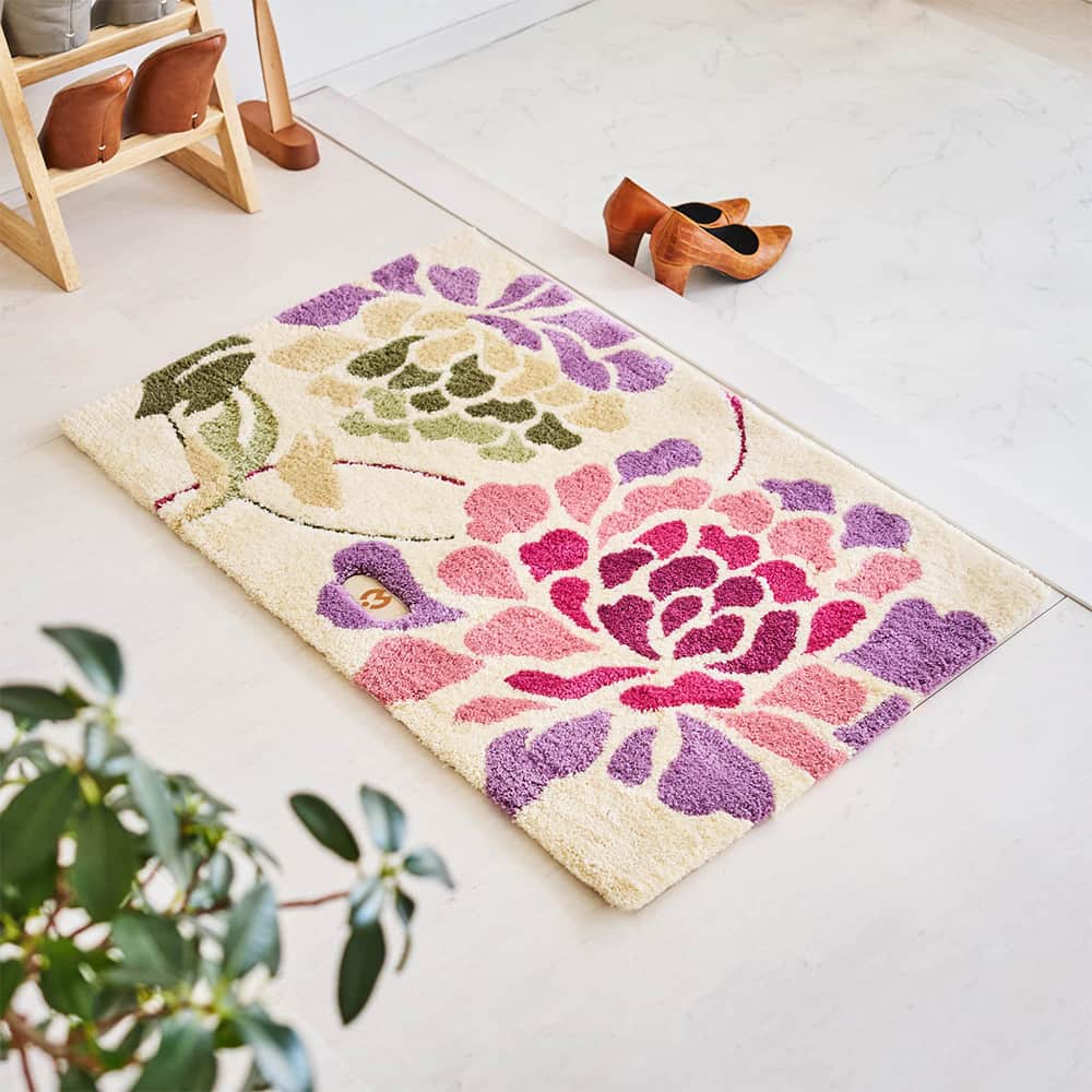 イタリア、ミラノを代表するハイブランドMila Schoen(ミラ・ショーン)のコレクションをマットでお届けいたします。ステンドグラスを思わせるような発色で描かれたピオニー(芍薬)の花模様。エレガントで麗しい、理想の玄関を叶えてくれる1枚です。
