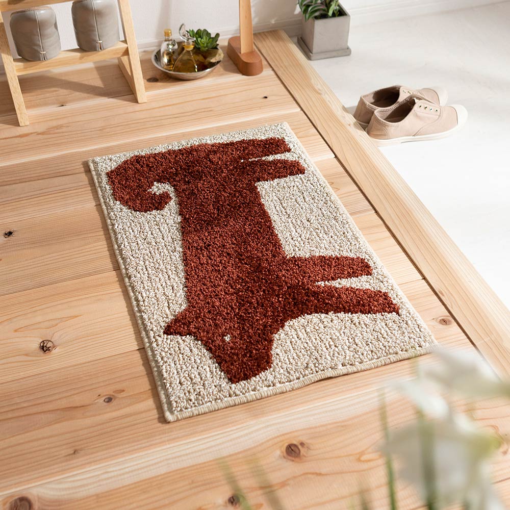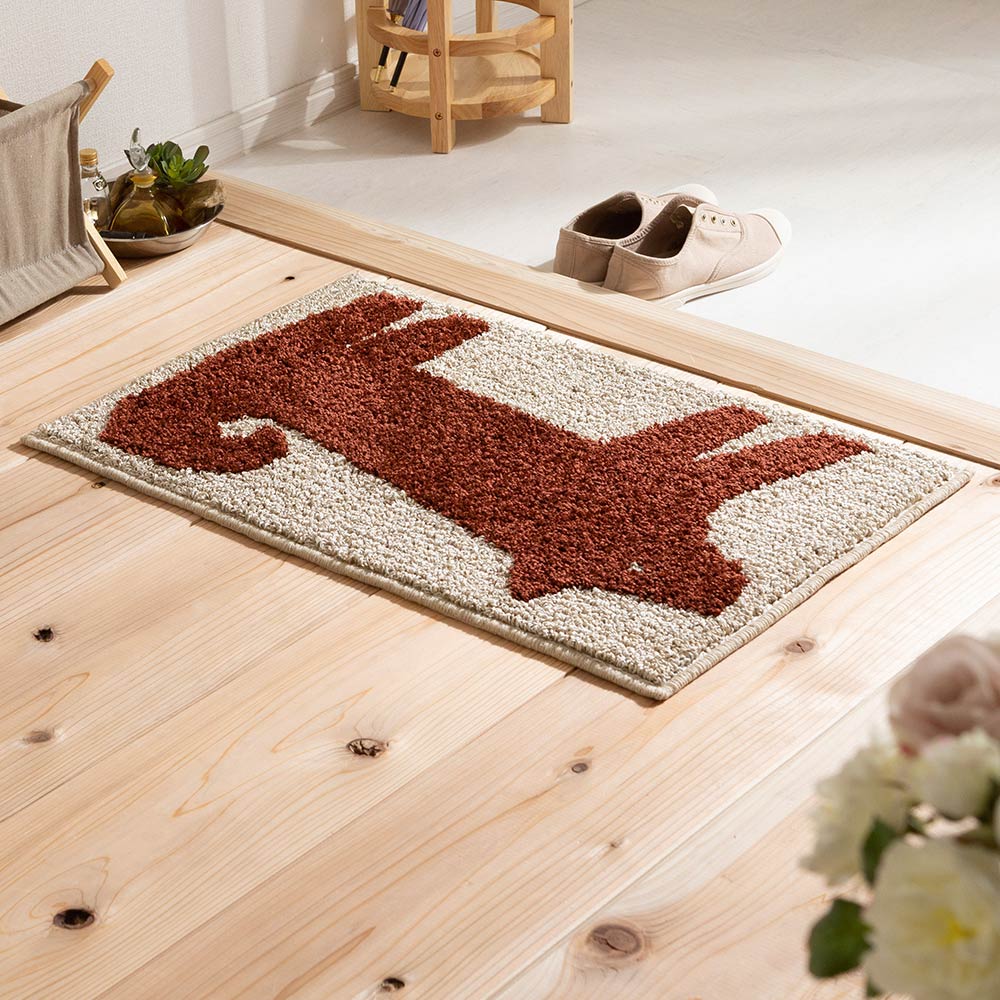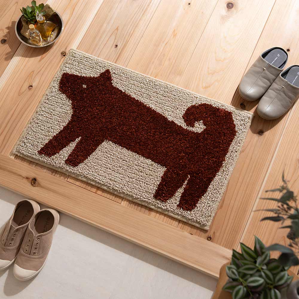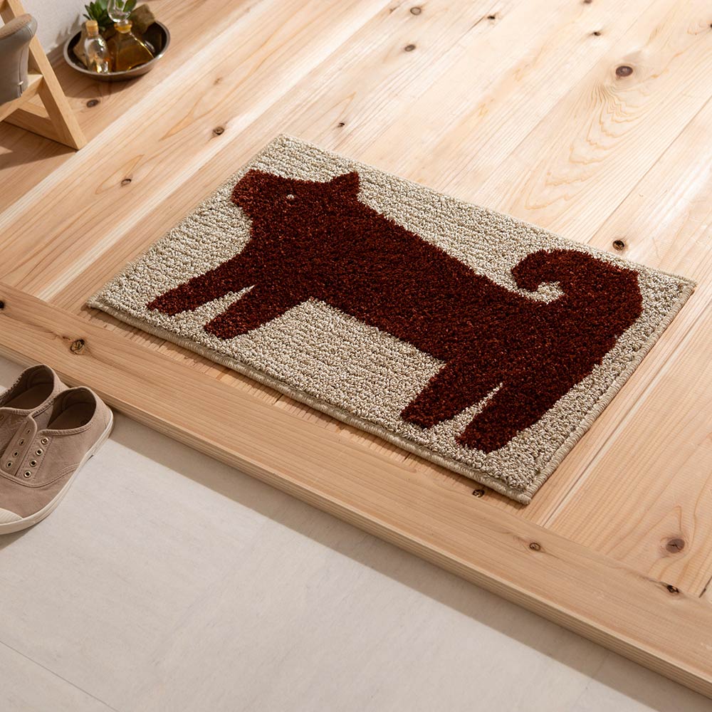 犬のポチをモチーフにした、なんとも粋なデザイン。出かけるときも帰ってきたときもいつでもポチがそばにいてくれる、そんな素敵なマットです。