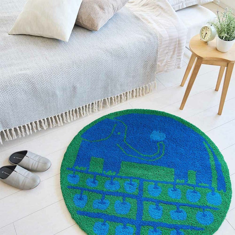 テキスタイルデザイナー鈴木マサル氏の、リンゴを大切に抱えるゾウの愛らしいデザイン「リンゴノキ」。その独創的な世界観を、熟練の織り技術で緻密にマットに表現した至高の一枚。こだわり抜かれた色彩、そして緻密に織り込まれた織り技術。鮮やかなテキスタイルが、空間に華やぎと個性を添える一枚。いつものお部屋に敷くだけで、まるでアートギャラリーのような洗練された空間に。日々の暮らしに、上質な彩りと癒やしを届けてくれます。