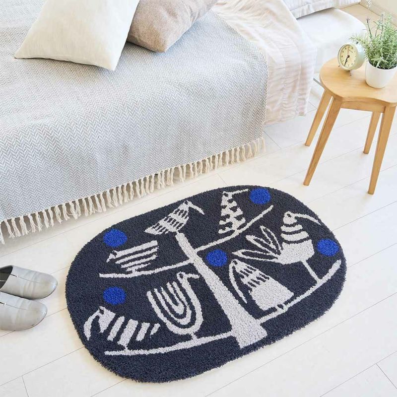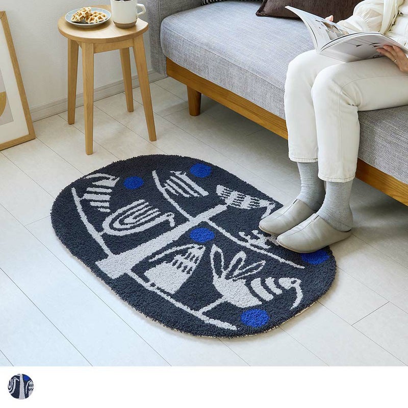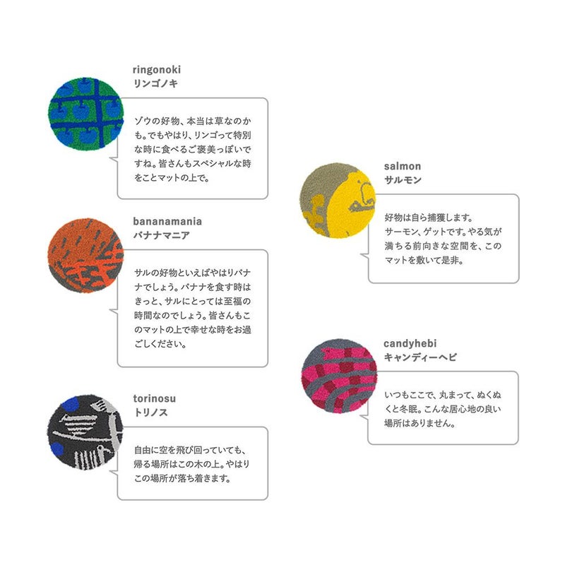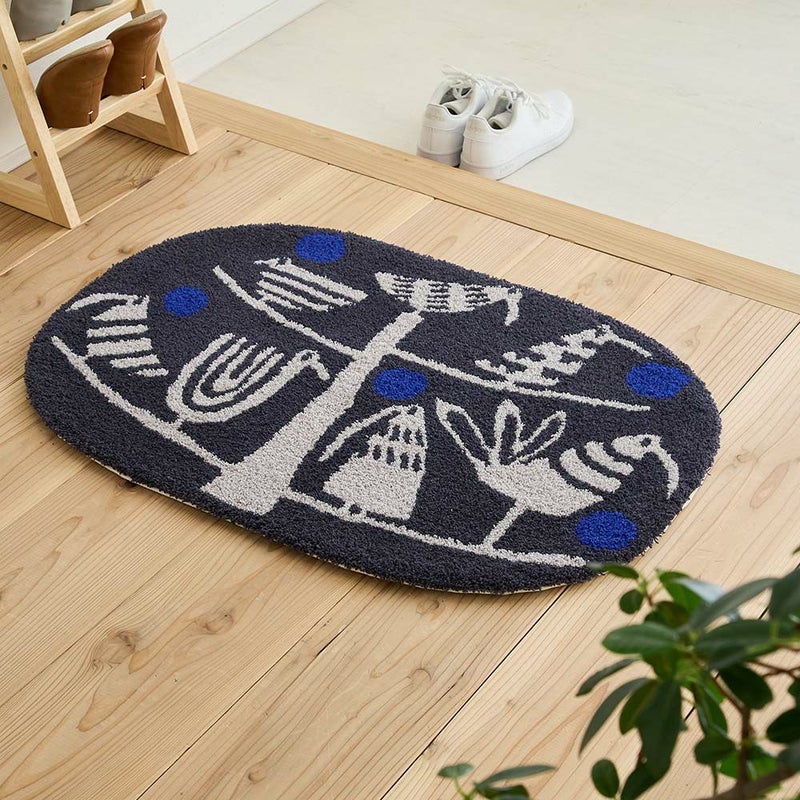 少し大きめのマットだからこそ、玄関に敷いた時のインパクトは抜群。愛らしいアニマルたちのデザインが、訪れる人々の心を和ませ、会話のきっかけにもなるでしょう。「可愛い!」思わず声に出したくなる、手描きの柔らかなテキスタイルデザインは空間のアクセントとして、玄関を明るく華やかに彩りを添えてくれます。