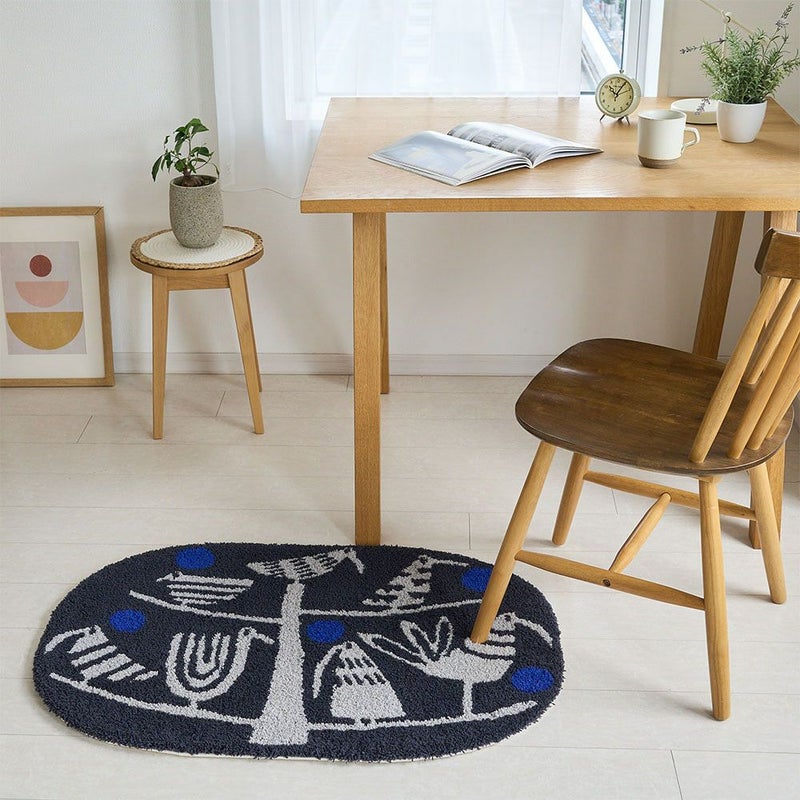 テキスタイルデザイナー鈴木マサル氏の、木陰で休む鳥たちが愛らしいデザイン「トリノス」。その独創的な世界観を、熟練の織り技術で緻密にマットに表現した至高の一枚。こだわり抜かれた色彩、そして緻密に織り込まれた織り技術。鮮やかなテキスタイルが、空間に華やぎと個性を添える一枚。いつものお部屋に敷くだけで、まるでアートギャラリーのような洗練された空間に。日々の暮らしに、上質な彩りと癒やしを届けてくれます。