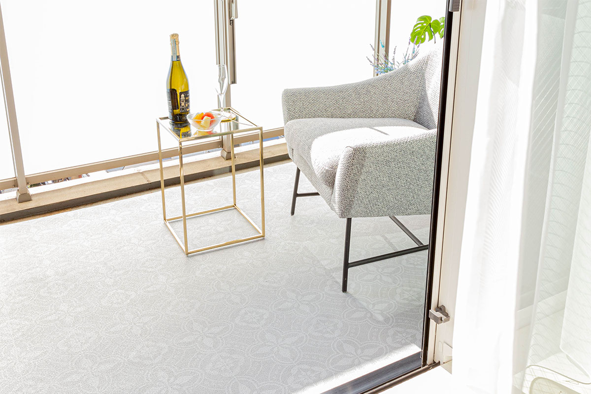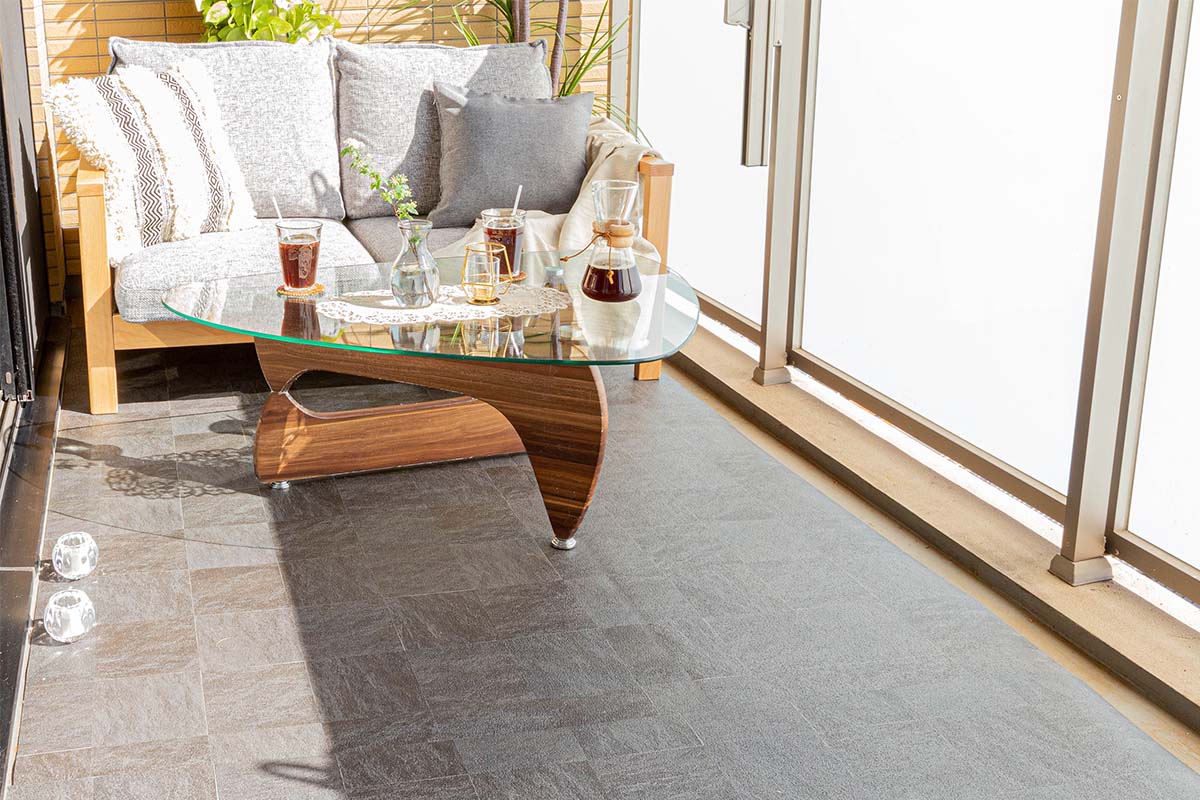 ベランダはもちろん屋内でも大活躍。玄関マットとして使ったら、おしゃれな玄関に変えられ掃除も楽々! また水と傷に強いので洗面所、ラックの下に使用するのもおすすめです。