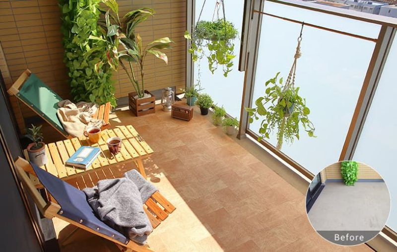 敷くだけで簡単におしゃれなベランダへ! ベランダのサイズに合わせてカットできるので、女性の方でも手軽にお使いいただけます。