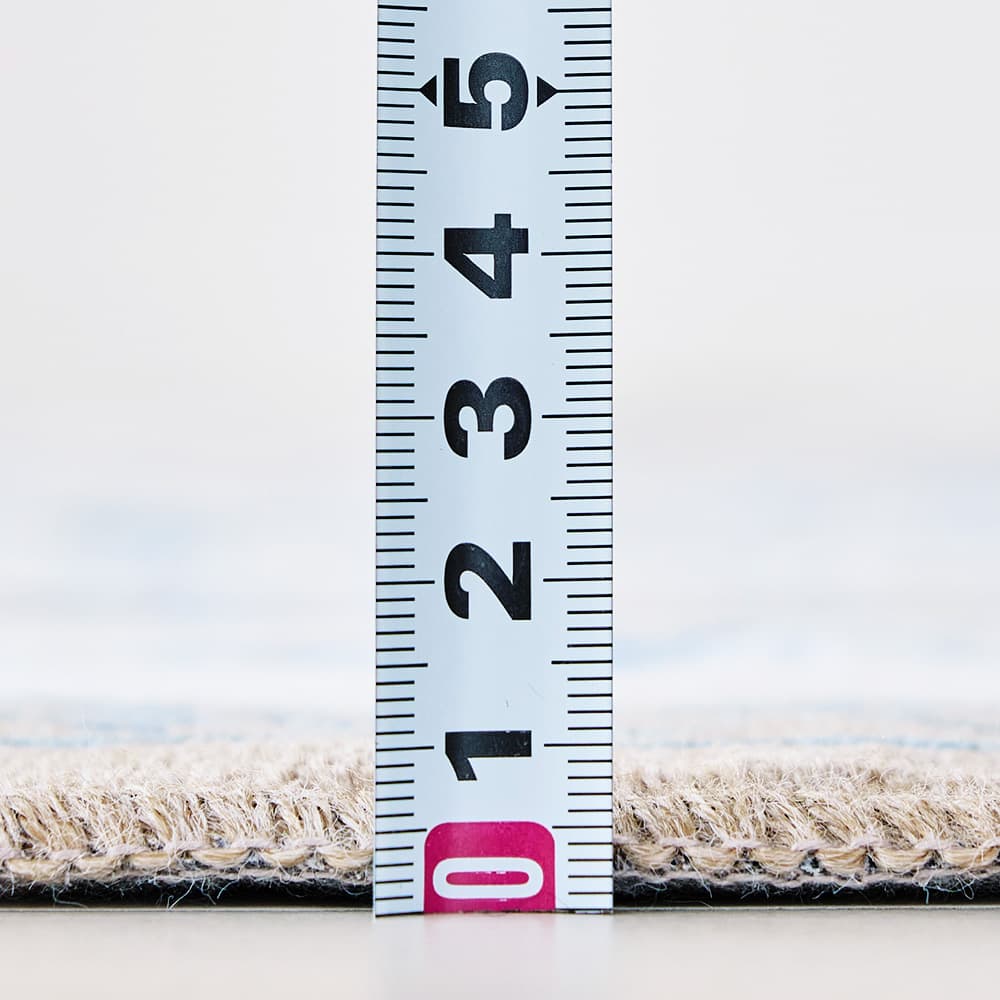床面の硬さを感じにくいメリットを保ちつつ、軽量さも兼ね備えた絶妙なパイルの長さ。縁はほつれを防ぐ「ロック加工」が施されており、耐久性に優れているうえ美しさが続きます。
