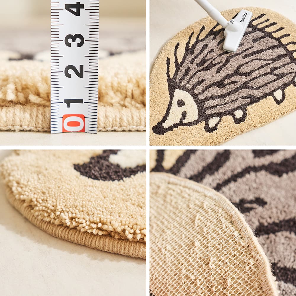パイルの長さは床の硬さを感じさせないしっかりとした厚み。裏面は滑りにくい加工付き。ズレにくいので、お子様がいるご家庭でも安心です。
