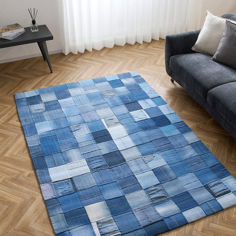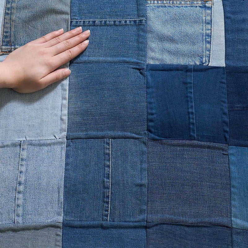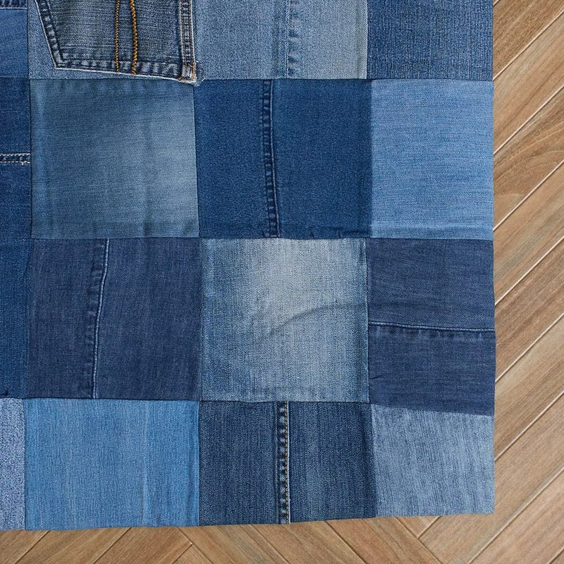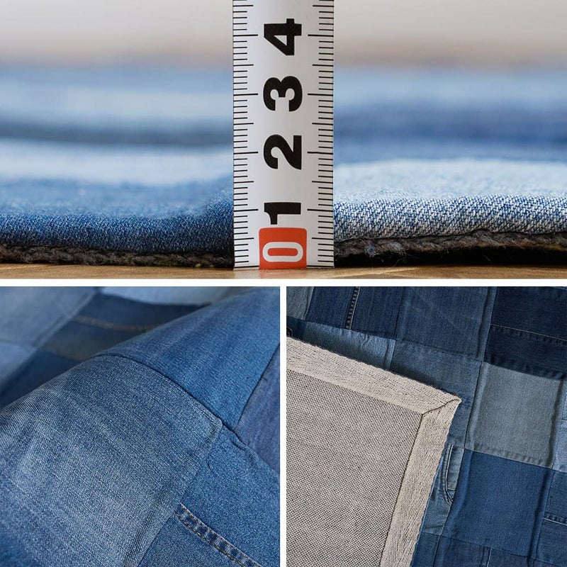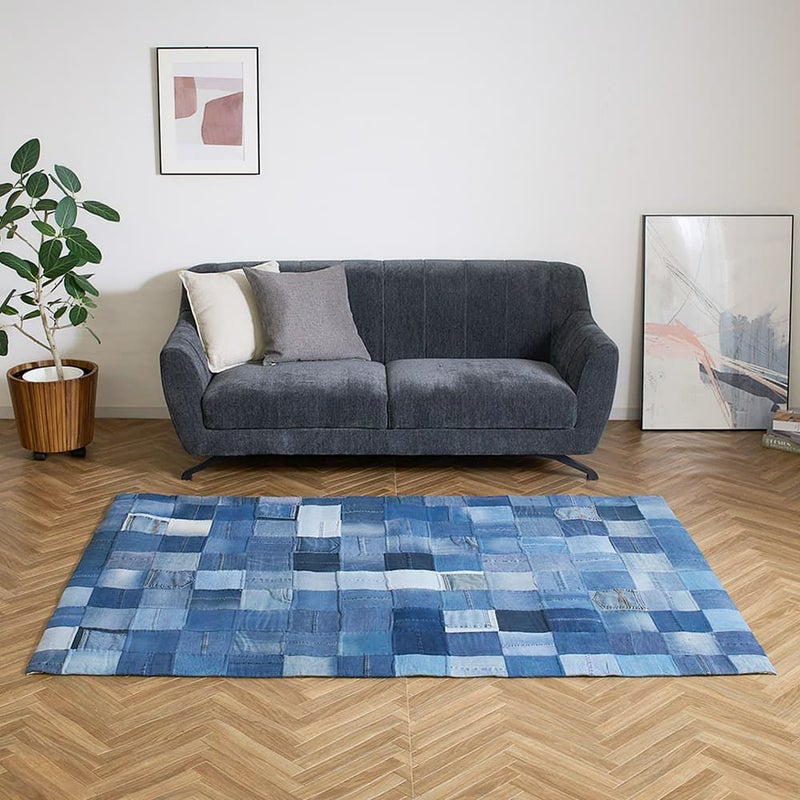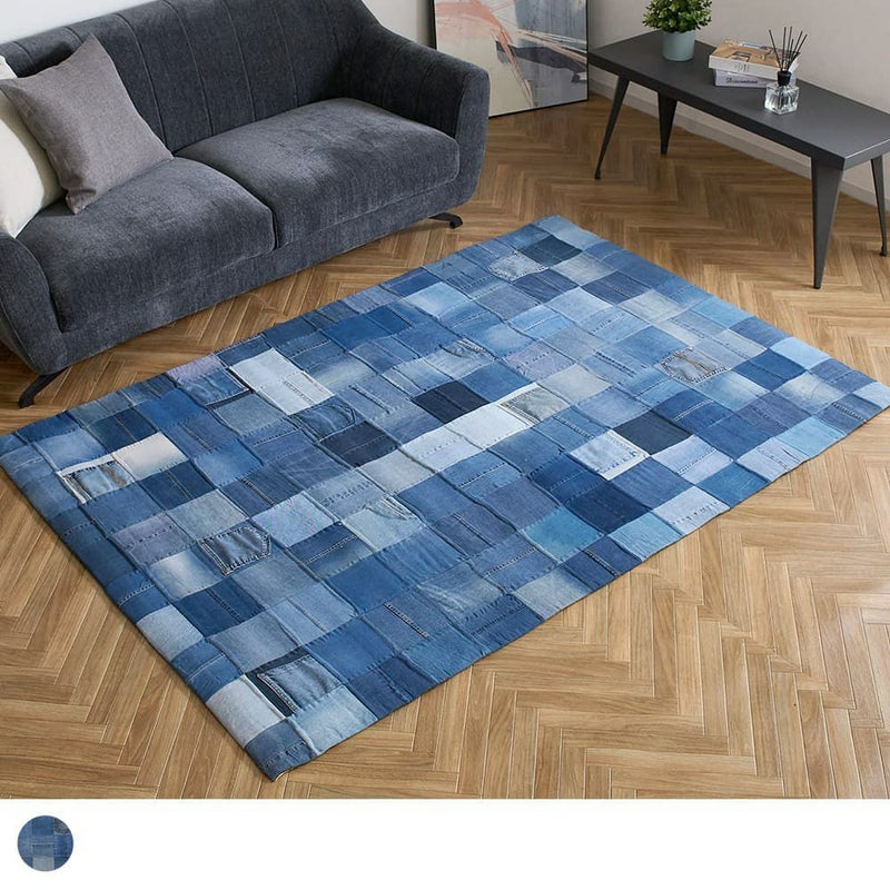 様々な色合いのコットンデニムのパッチ加工が施されたラグは、目を惹くビジュアルとともになんだかわくわくした気持ちに。使い込むほどに、独自の風合いが醸し出され愛着が湧いてくるラグです。