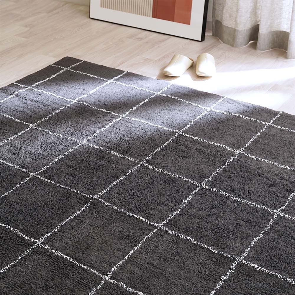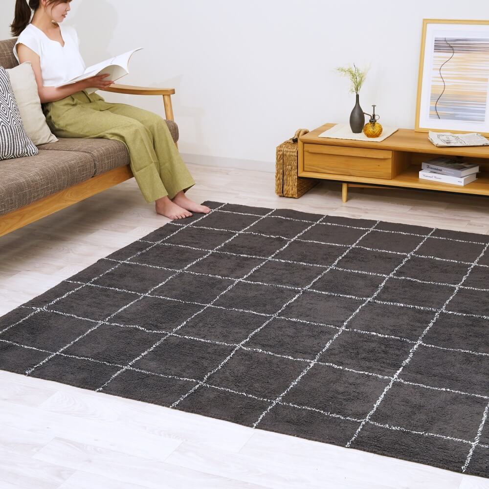 シンプルなチェックのデザイン、合わせやす2カラーだからこそ多様なシーンにも。リビングにはもちろん、ダイニングマットや客間など人目のつくところにもおすすめなおしゃれラグ〇あなたのセンスで空間に彩を。