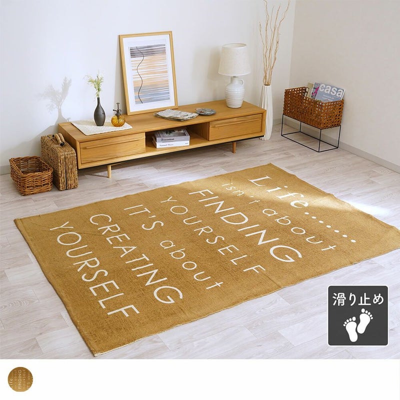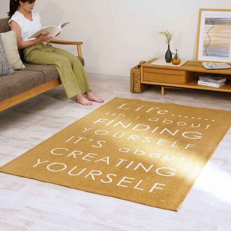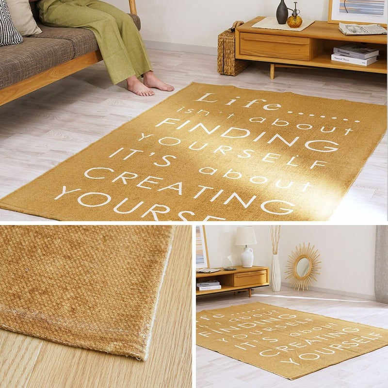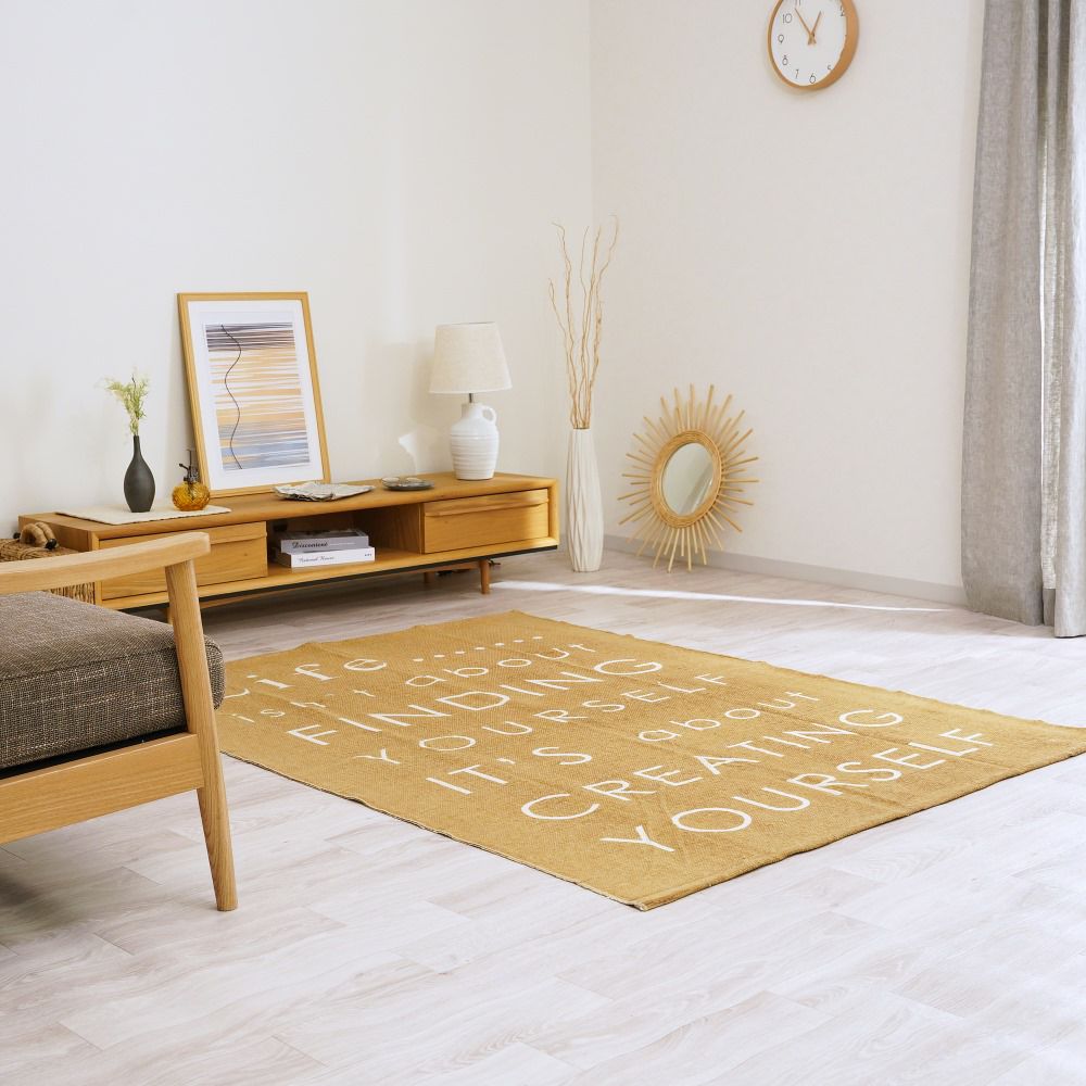 こちらのデザインラグ、大きな英字が特徴的ですよね。英字のメッセージが、インテリアにアクセントを与えつつハイセンスな空間に。リビングやダイニングルームなど、目に触れる場所にサッと敷いておしゃれな雰囲気を楽しみましょう◎