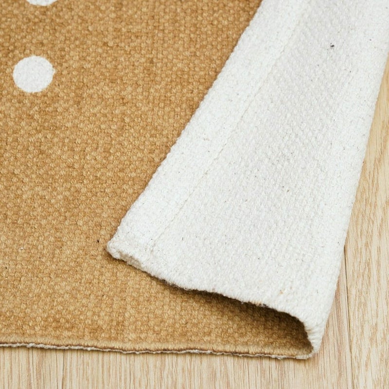程よい厚みでラグの端には糸がほつれにくい処理が施されているため毛羽立ちにくく、耐久性もグッド!長くお使いいただけます。更に、裏面には滑り止め加工が施されているので、小さいお子様やペットがいるご家庭でも安心です。
