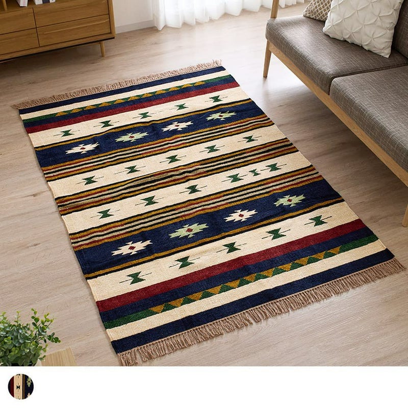 ネイティブアメリカンの伝統的な柄「オルテガ柄」のデザインを取り入れた、民族調のおしゃれなデザインラグ。左右にフリンジをあしらうことで、お部屋のさりげないアクセントに。職人がひとつひとつ丁寧に仕上げており、手織りならではの味わい深い風合いが魅力のラグです。