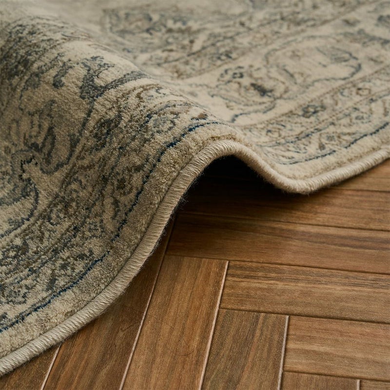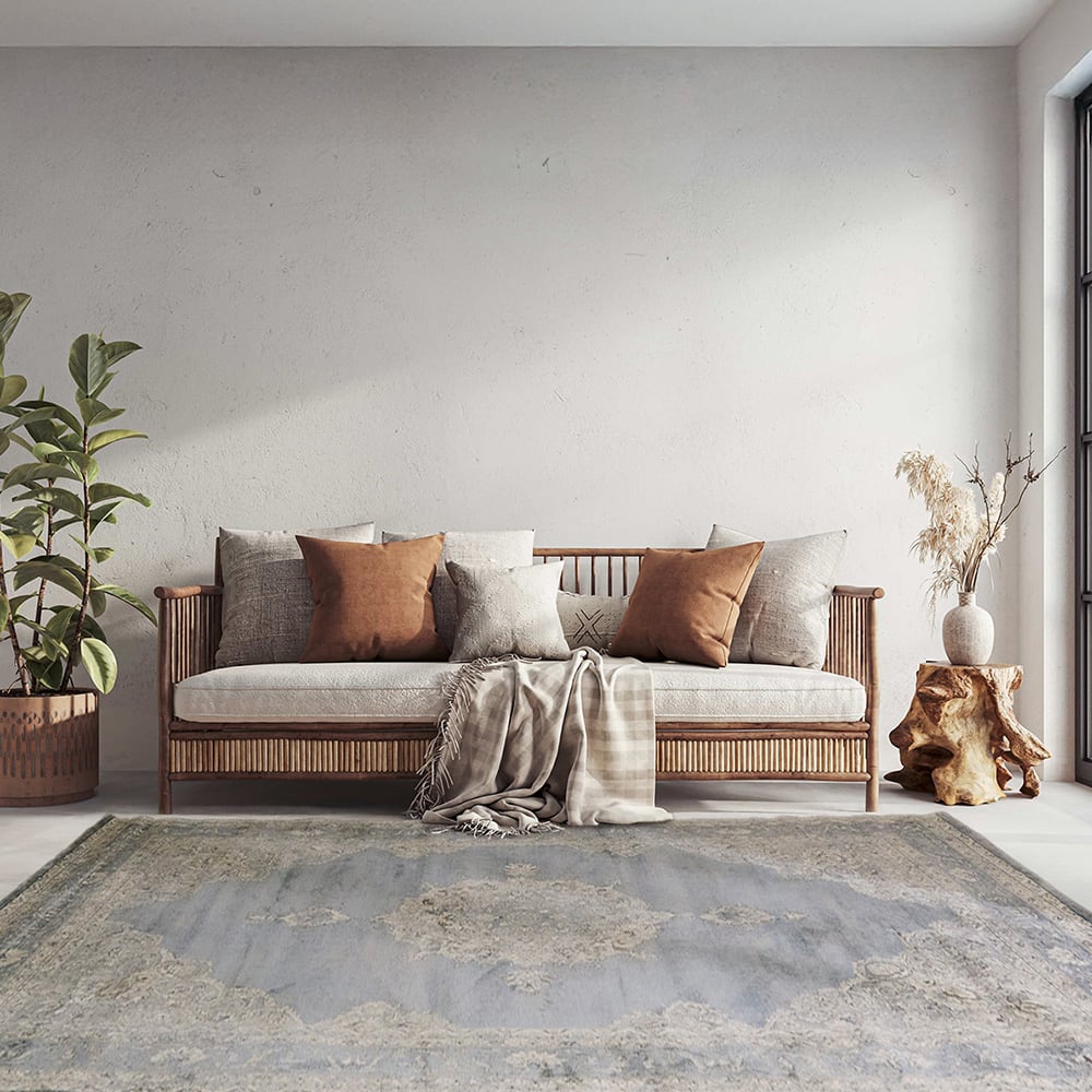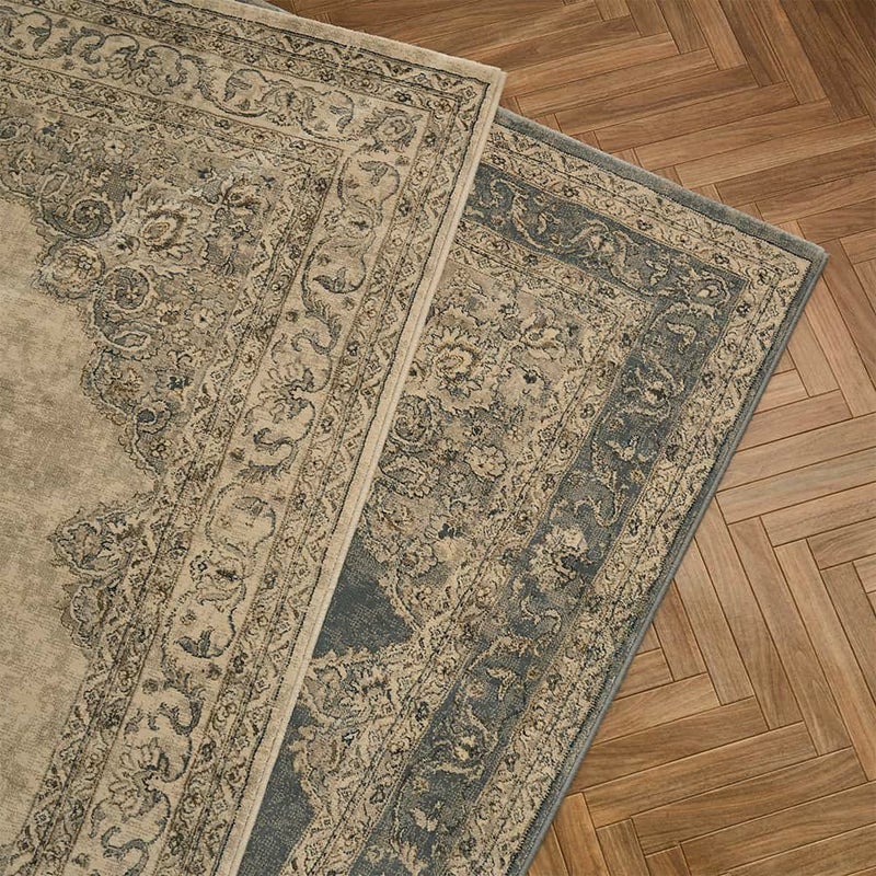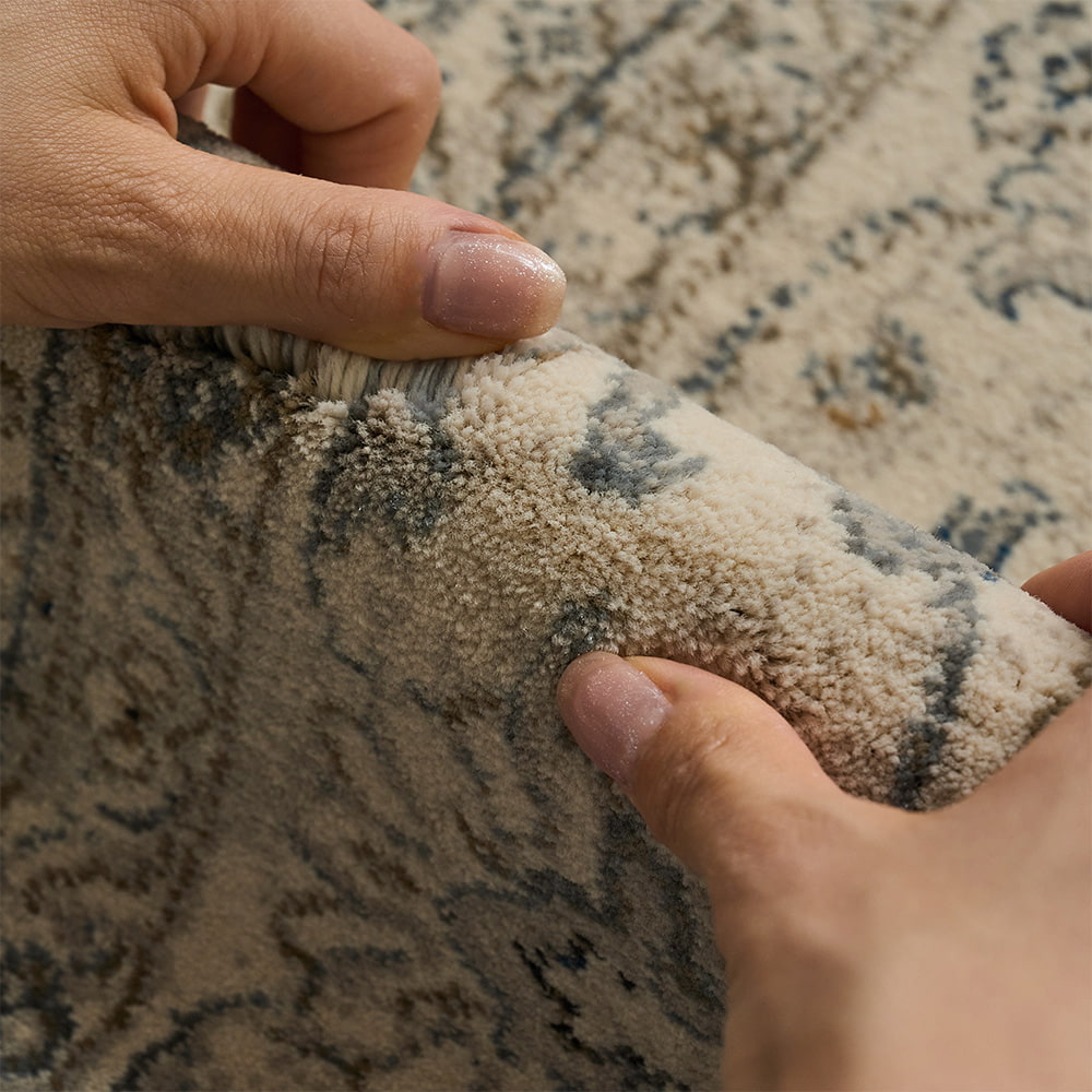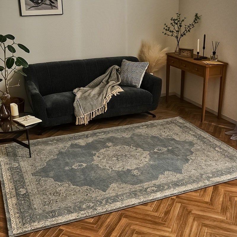 ラグの中心を飾る、繊細で美しいメダリオン模様。リビングに敷けば、その美しい存在感が空間に華やぎを添えて、より上質な空間へと昇華してくれるでしょう。