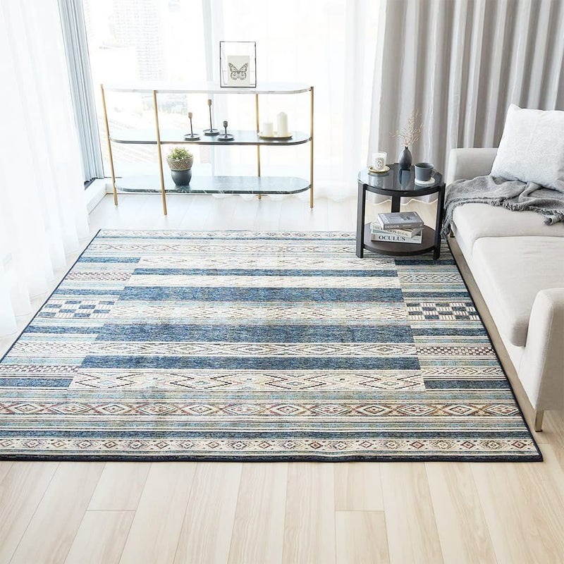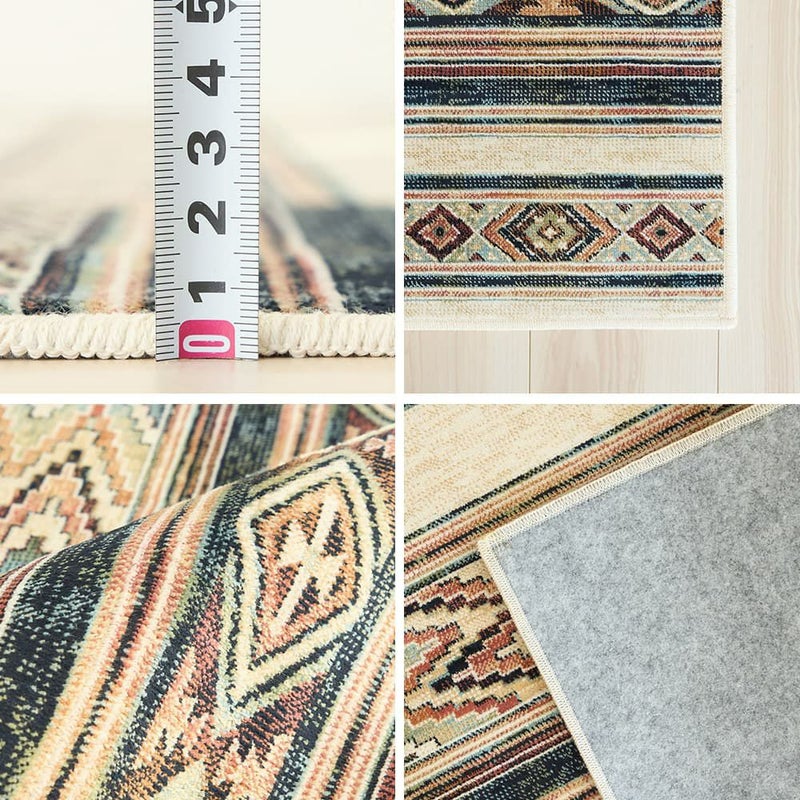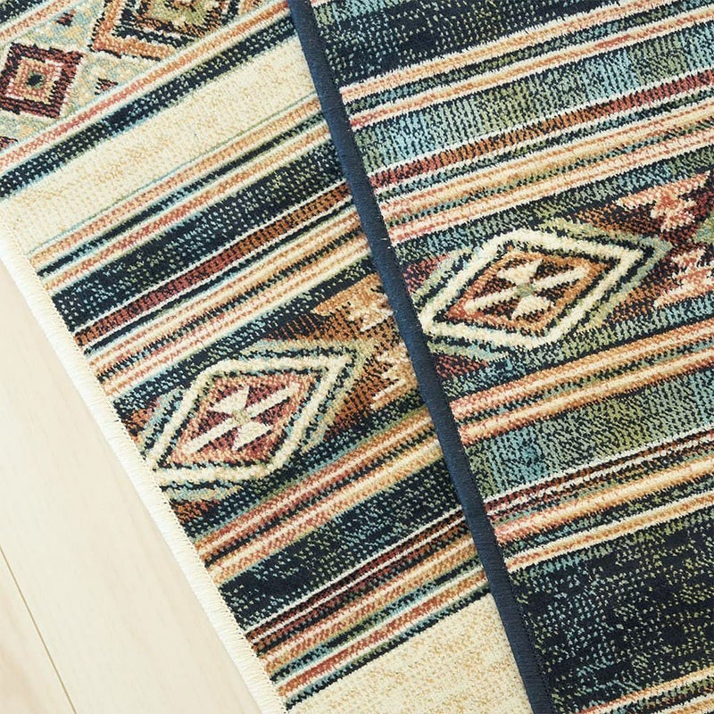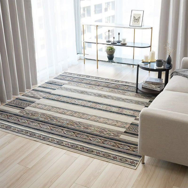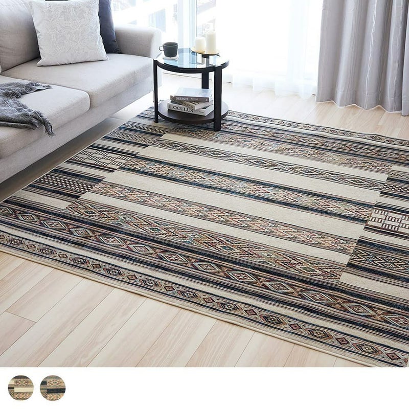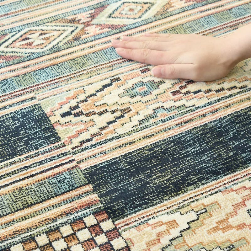存在感のあるエスニック柄ラグは、敷くだけで異国情緒たっぷり。生地のさらっとした軽やかさも、リラックスムードを盛り立ててくれます。休日やほっと一息つく瞬間に、そばに置きたい1枚です。