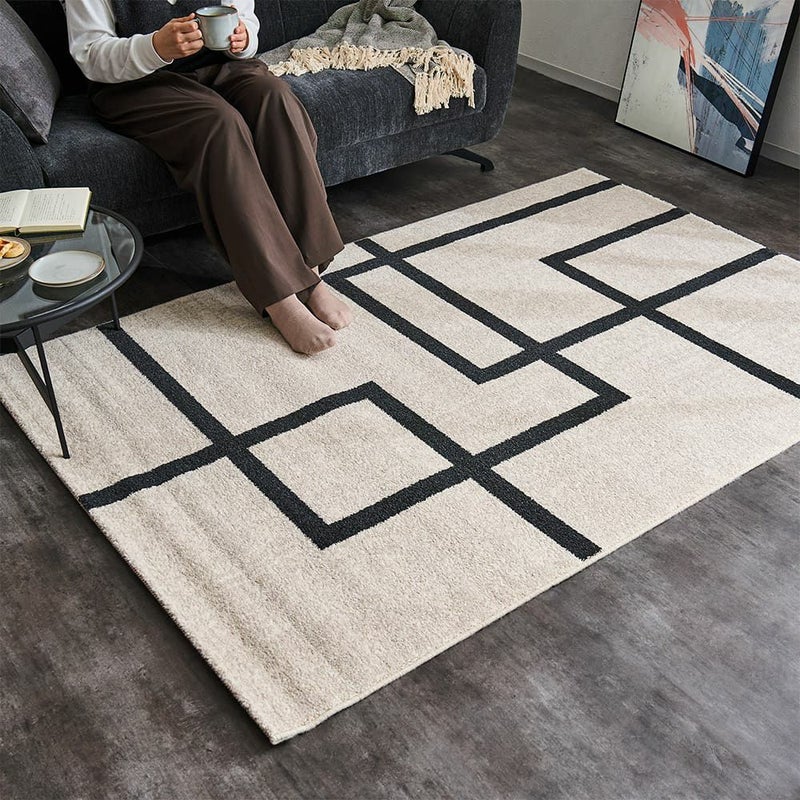潔いミニマルなデザインが洗練さ漂うモダンラグ
