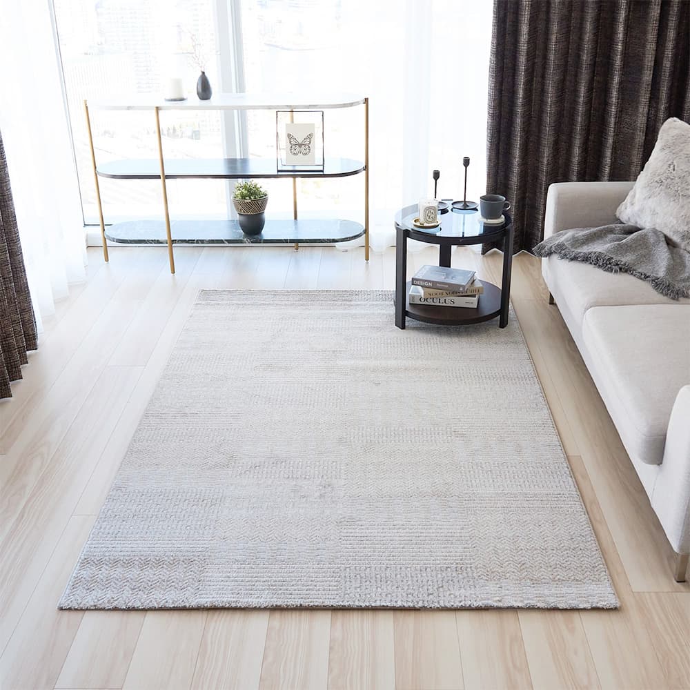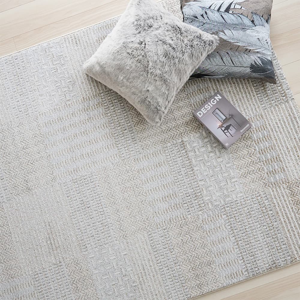 いくつもの表情を見せるパネルデザインのウィルトン織ラグ