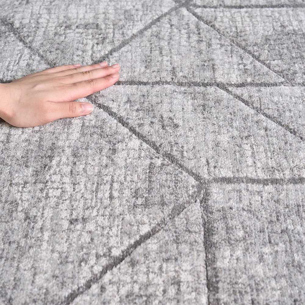 シンプルながらも個性が際立つ幾何学デザインは、どんなインテリアにもマッチ。柔らかく快適な触感は、歩くたびに贅沢な感覚をもたらし、日常に特別なひとときをプラスします。モダンラグを敷いて、あなたの暮らしを更にワンランクアップさせてみませんか?