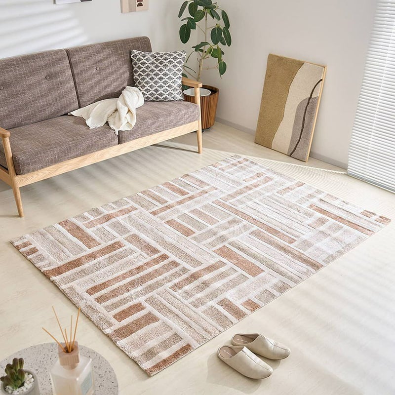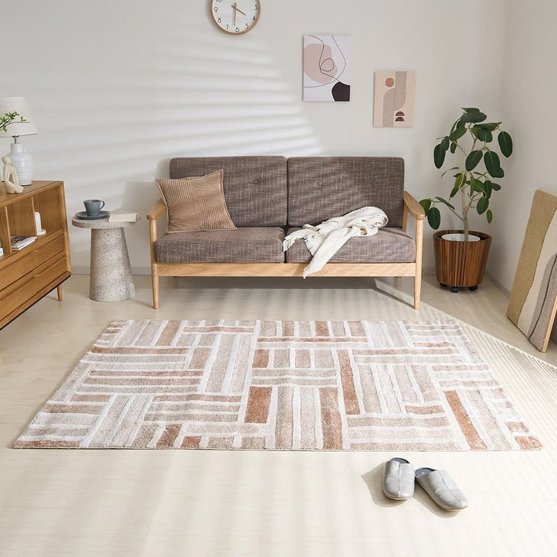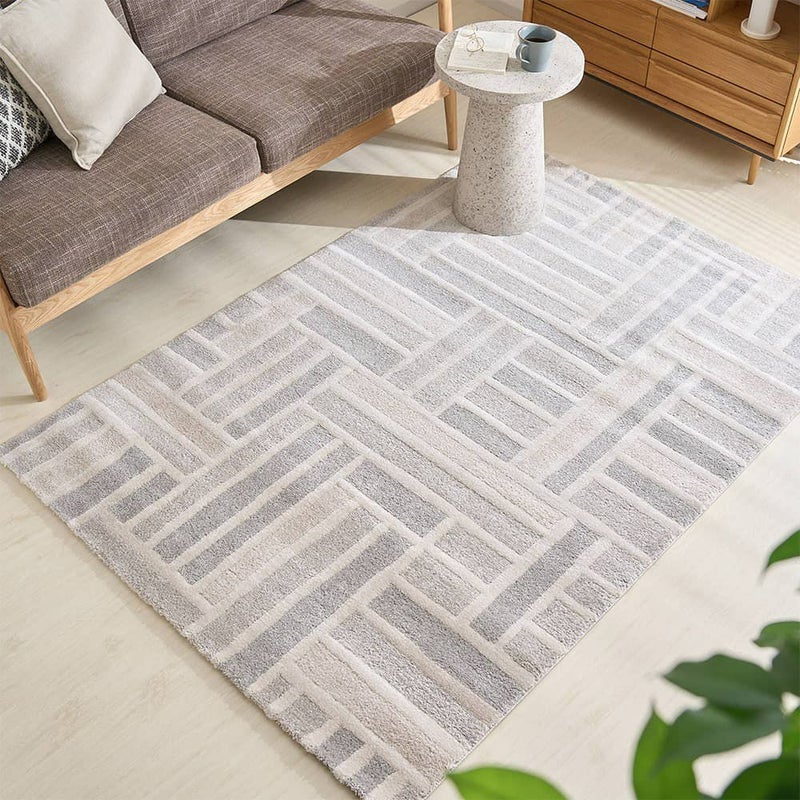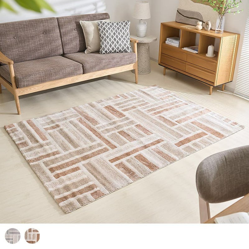 直線美が描く大胆なパターンが、空間を引き締めながらも洗練された印象をプラス。都会的でおしゃれな雰囲気を求めるあなたにぴったりの一枚です。いつものお部屋を、ワンランク上の空間へ変えてみませんか?