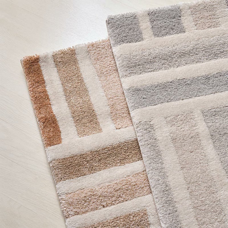 幾何学的な形状や図形がモダンで洗練された印象に。色のコントラストが上品で、空間にリズムと調和をもたらします。高密度に織られたウィルトン織ならではなの品質を、是非お試しください。
