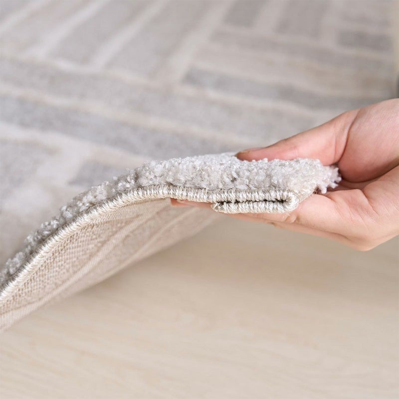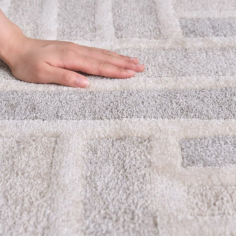 ソフトな感触で程よく弾力を感じる踏み心地。明るくシンプルでナチュラルモダンなデザインがとってもお洒落。ポリエステル100%なので耐久性もあり長く使える1枚に。