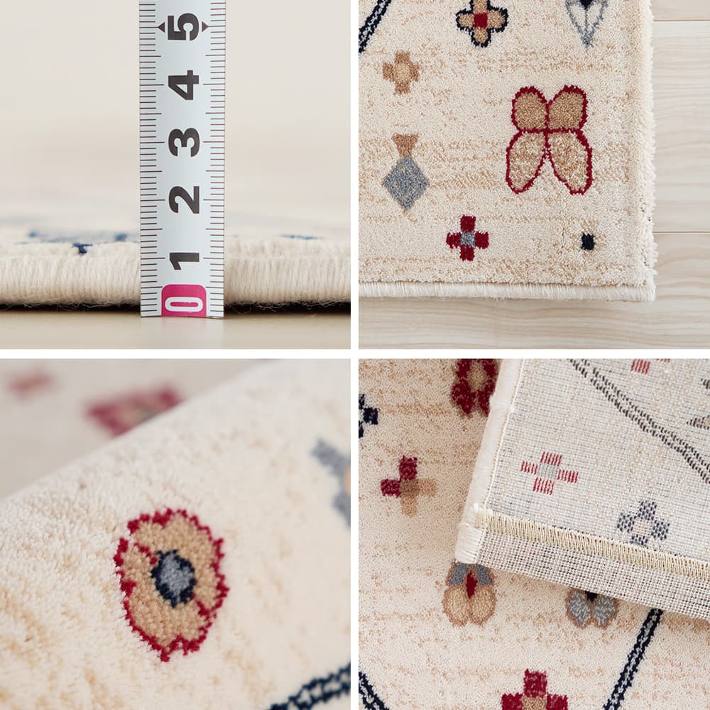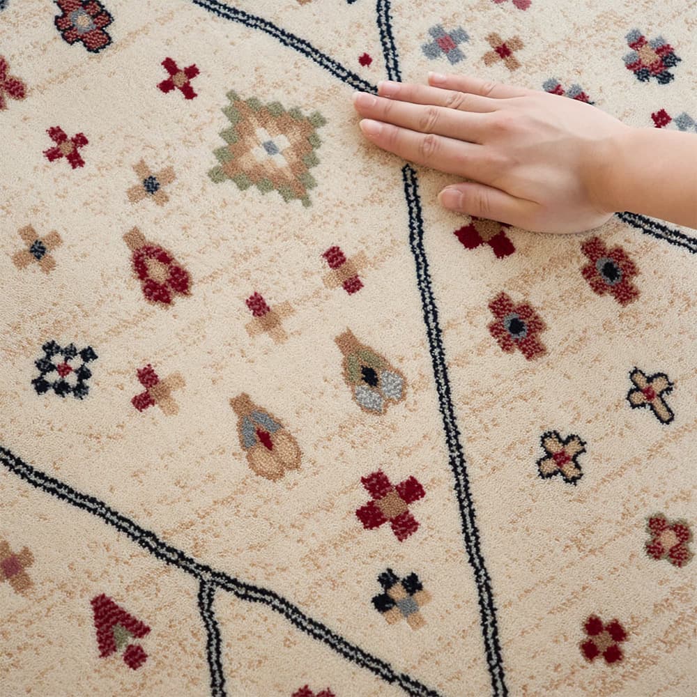 目がギュッと詰まっているのでほこりや汚れが奥まで入っていかず、ラグの表面に留まります。普段のお手入れは掃除機だけで充分。汚れにくく耐久性も抜群なので、長く使えてコストパフォーマンスが高い商品です。