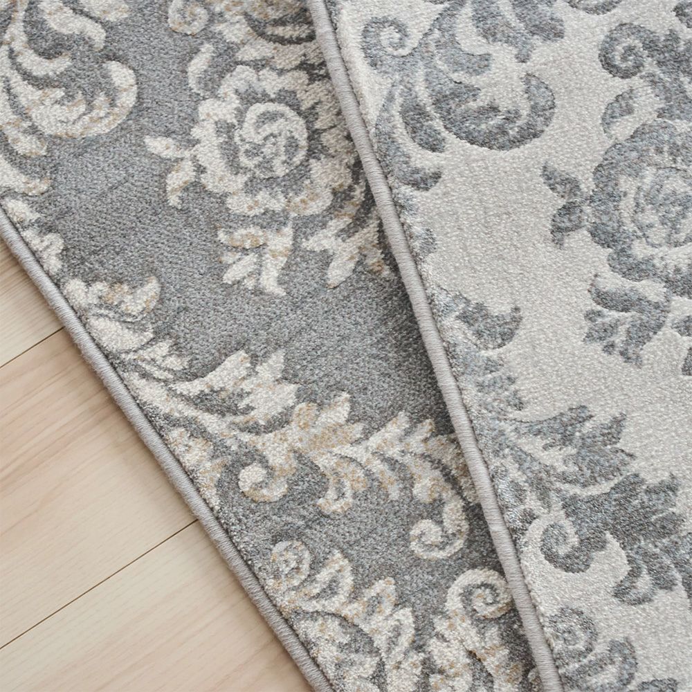 デザインに沿って糸抜きする事で生まれた立体感が味わい深い、エレガントなウィルトン織りラグ。上品なダマスク柄がお部屋に華を添えてくれます。