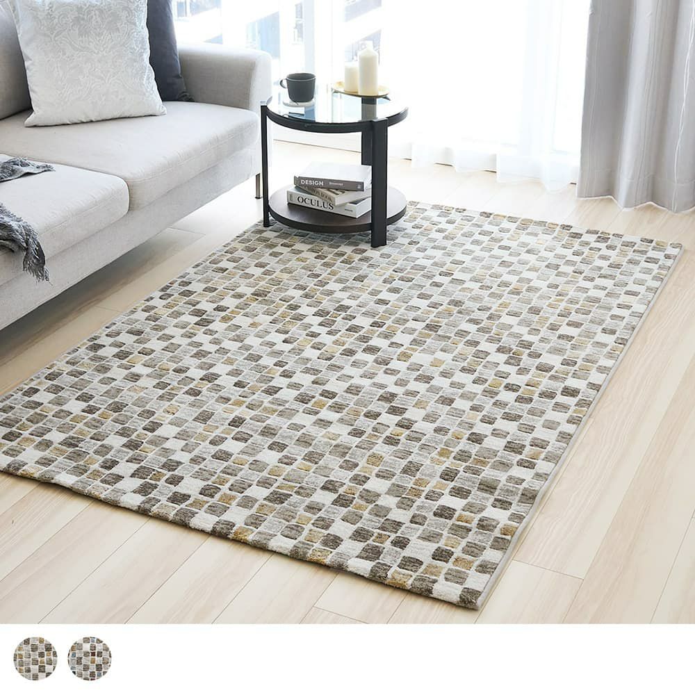 バスルームやキッチンなど水回りの装飾で活躍するモザイクタイルを、メインルームでも味わえたら…そんな願いを叶えるキューブデザインのラグです!高密度のウィルトン織なので、ふかふか感も両立。座ったり寝転んだりくつろぎながら、モザイクタイル柄の可愛らしさを存分にお楽しみください。