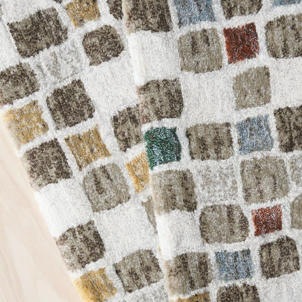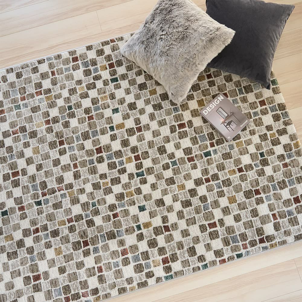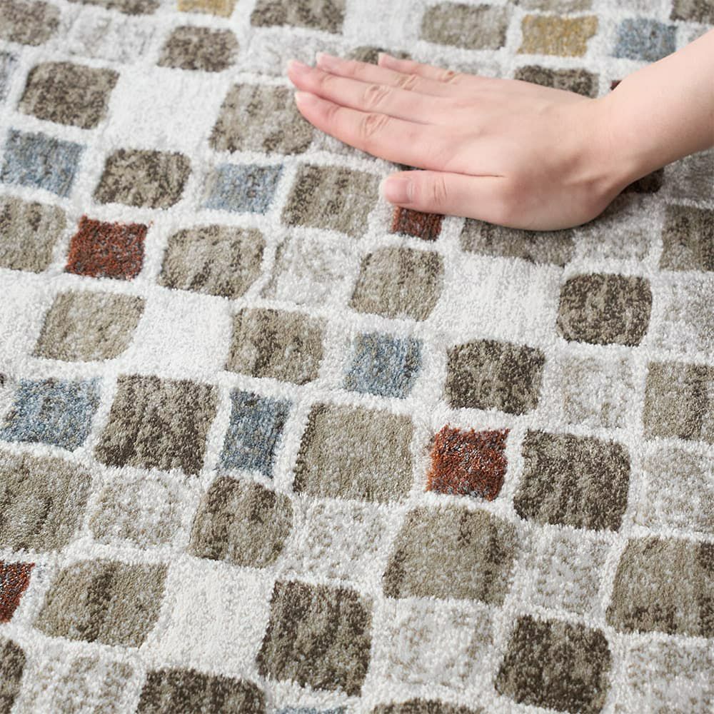 モザイクタイルのPOPなデザインを、ふかふかのラグで存分に味わう
