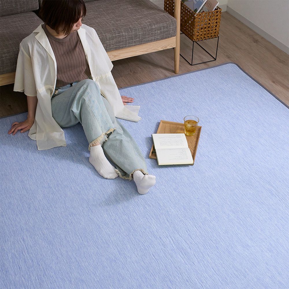 どんなお部屋にもしっかりハマる無地調の接触冷感ラグ。リビングはもちろん、こども部屋や、和室、応接間など使いたい場所にサッと敷くだけ〇