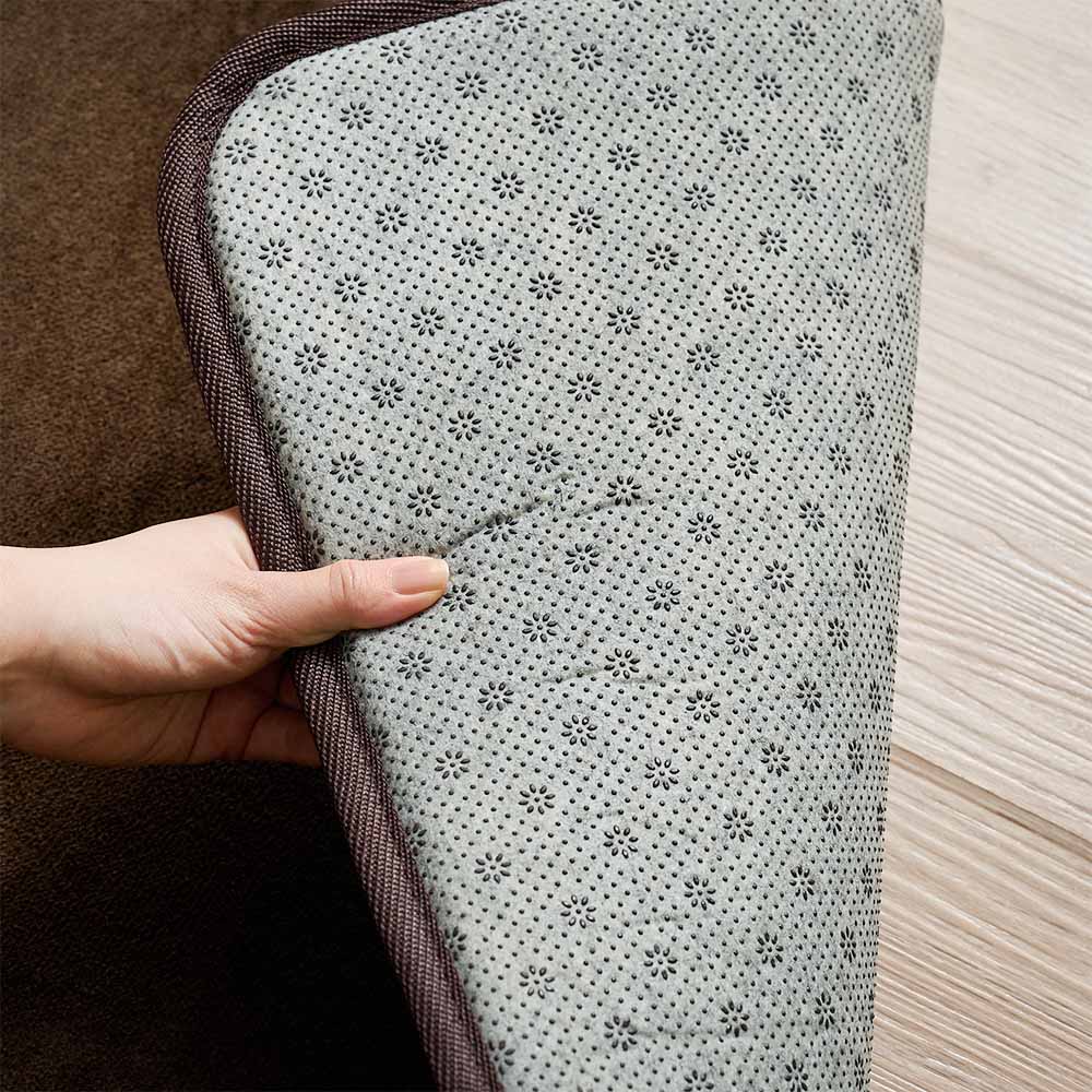 ラグの裏面には細かいドットの滑り止め加工が施されており、滑りやすいフローリングの上でもずれにくい安心仕様。お子様が走り回ってもラグが一緒にずれてしまう心配もありません。小さなストレスを軽減し、安心・快適にお使いいただけます。