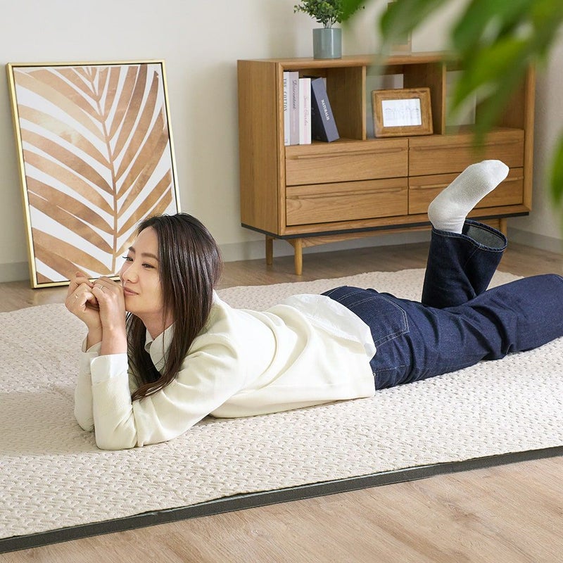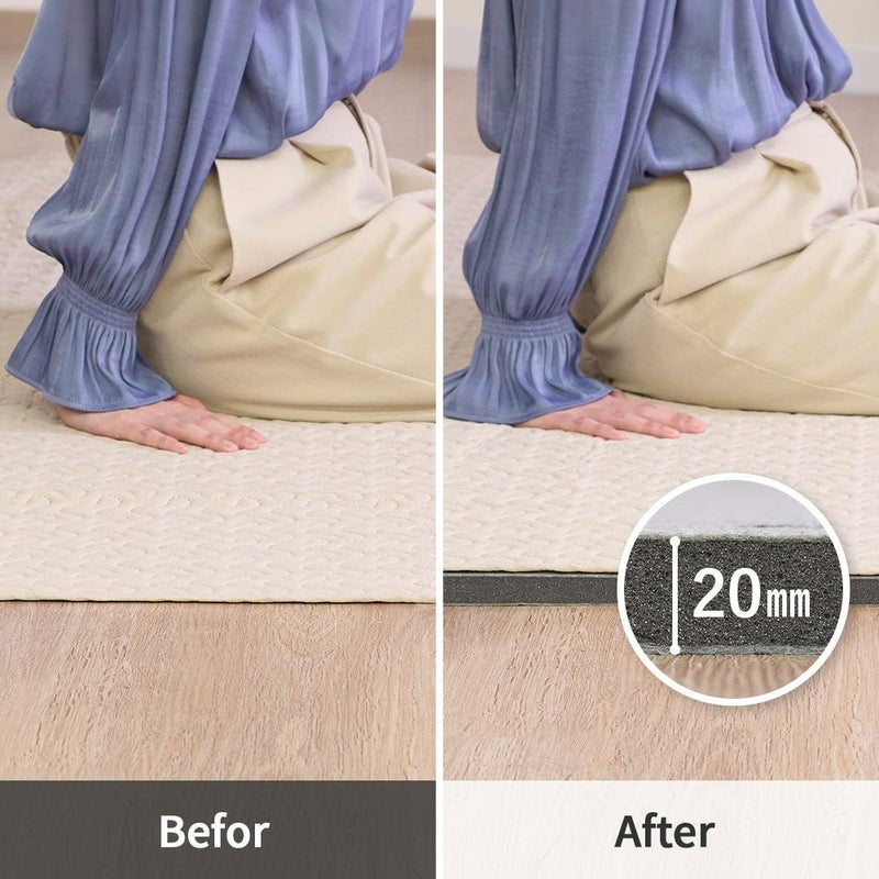 ラグの下に敷くことで、厚みを増し、より快適な空間を実現します。設置も簡単で、ラグの下に敷くだけでOK。薄いラグでも、まるで高級ホテルのようなふかふかの触り心地に大変身。