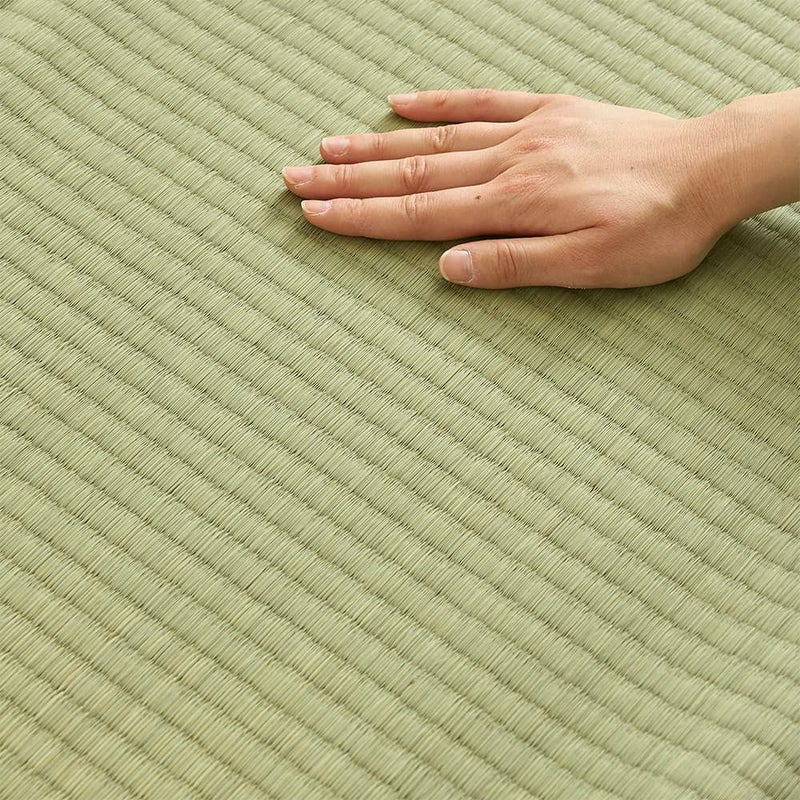 い草には空気の自然浄化作用、湿度の調節作用などがあります。さらに、良質ない草を高密度に織り込んでいるので、高い耐久性と素足に心地よいクッション性が保たれます。縁は光沢のある素材を使用しているので高級感も抜群です。