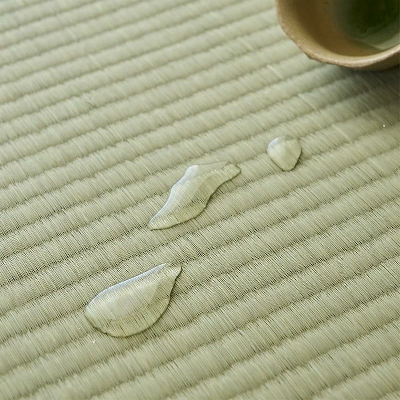 い草の表面にはっ水加工を施しているため、水分を水玉状にはじきます。飲み物などをこぼしても、すぐに拭き取ればシミにもなりにくく安心です。