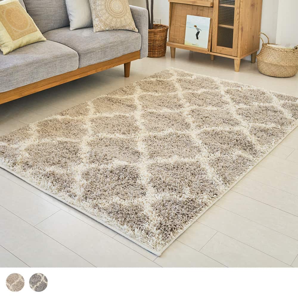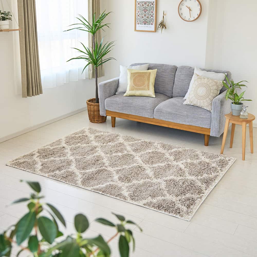 モロッカンデザインの中で最も人気の定番デザインのラグです。少し大きめのモチーフなので、柄にうるささがなく、ナチュラルなインテリアを完成させてくれる使いやすいアイテム◎程よい厚みとなめらかな肌触りで、毎日を快適に心地よく彩ります。