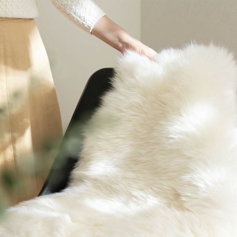 ソファーや椅子、床に敷いて敷物にしたりと、いろいろな使い方があるムートンラグ。高級感のある毛並みとボリュームのある毛足は存在感バツグンで、お部屋のアクセントにピッタリの一枚です。