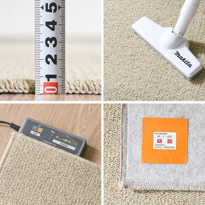 やや薄手でありながらもしっかりと作られたカーペット。パイルの毛先をカットし、ループになっていないので引っ掛かりにくく、肌ざわりもソフトです。ホットカーペットや床暖房にも対応○
