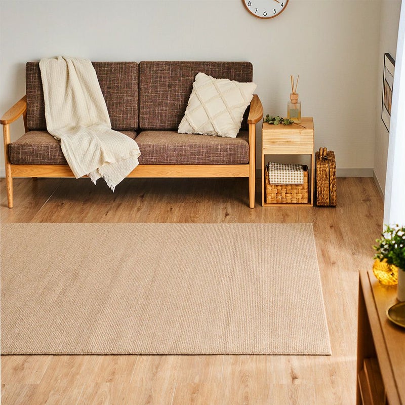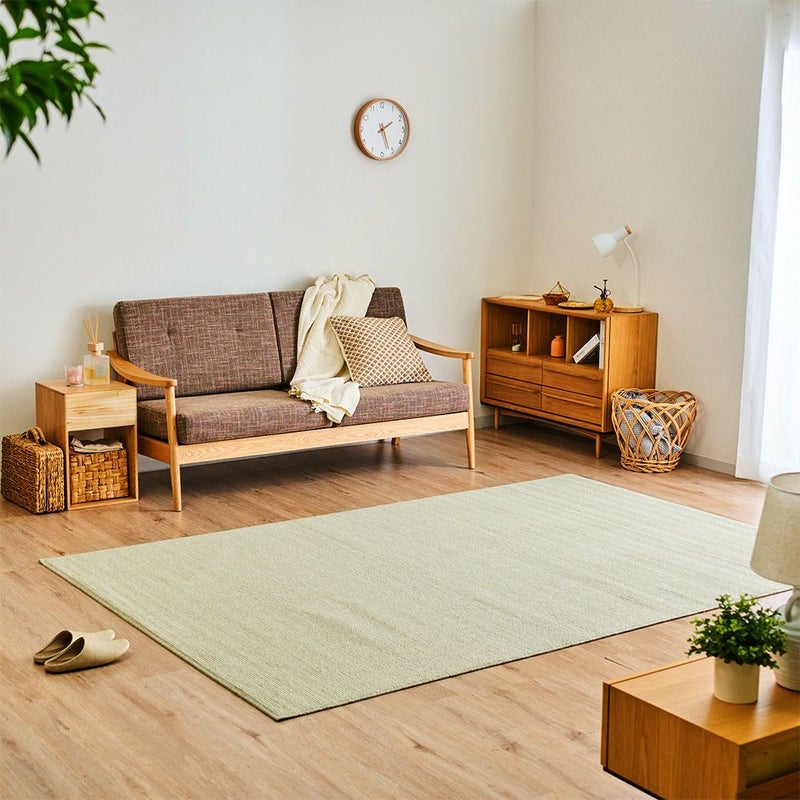 調湿効果が梅雨のじめじめ感を解消し、さらっとした肌触りが暑いお部屋の対策にも活躍するい草ラグ。