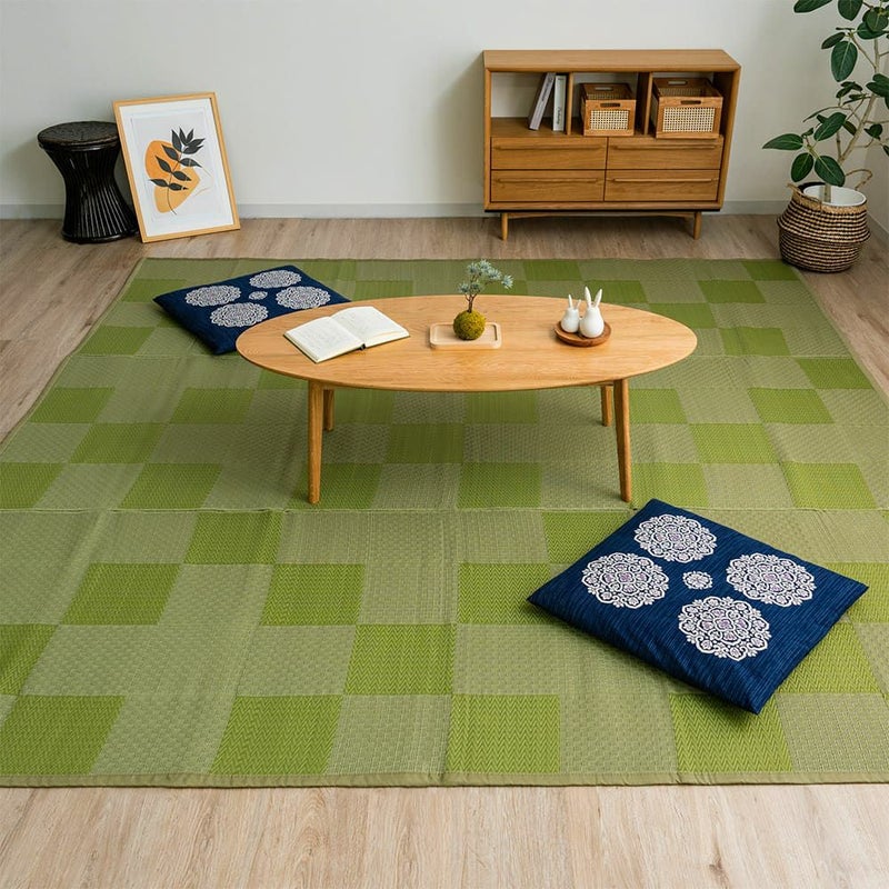 天然素材ならではの扱いの難しさで今まで手を出せなかったい草も、ポリプロピレン製のい草風ラグなら全て解決!い草風のメリットである利便性と伝統的な市松模様で、憧れの和室空間を手に入れましょう。