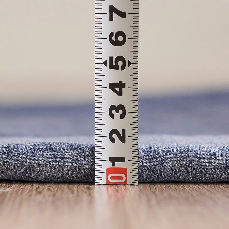 毛並みがないラグながら、中材に固わたが入っているのでしっかりとした厚みと踏み心地。髪の毛やほこりが絡まりにくいので、お手入れ簡単というメリットもあります。