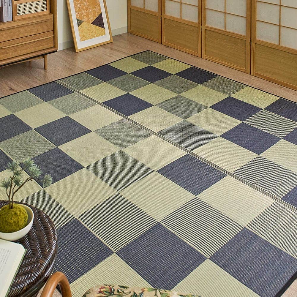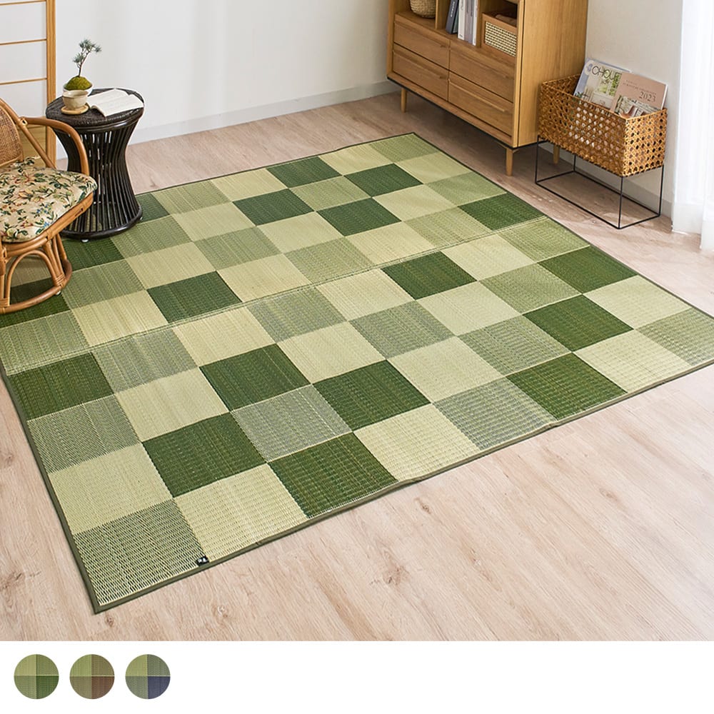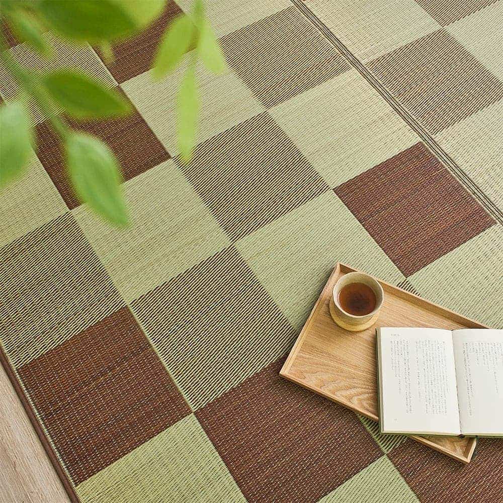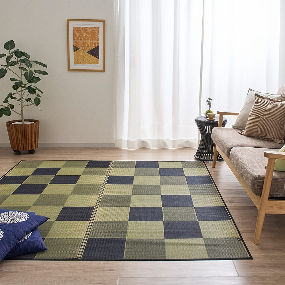 グラデーションになった市松柄が魅力の「ブロック」。異なるトーンで全体がまとめているため、シックな印象でもお部屋が暗くなりすぎることなく、程よいアクセントを与えてくれます。い草特有の心地良さも欲しいけどせっかくならおしゃれも取り入れたい、そんな方におすすめの1枚です。