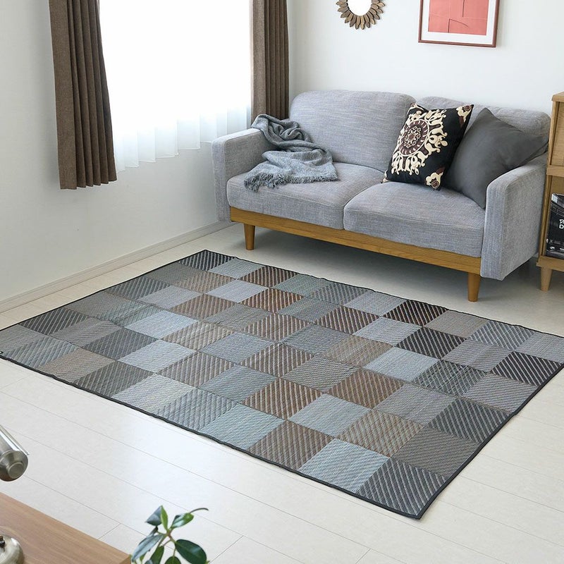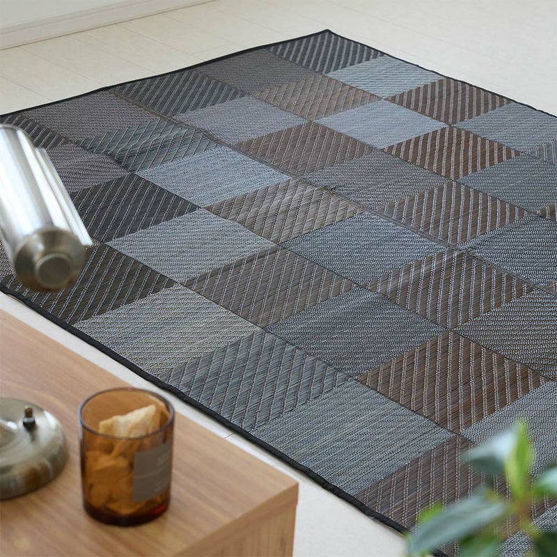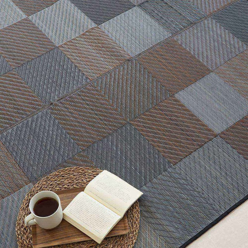 今までのい草ラグのイメージとはひと味違った、パッチワークのようなデザイン。1マス1マスもシンプルなチェック模様で、和室にも洋室にも合わせやすい佇まいです。もっとカジュアルにい草ラグを楽しんでみませんか?