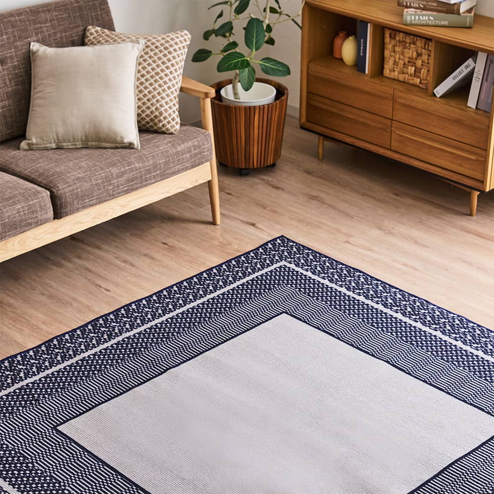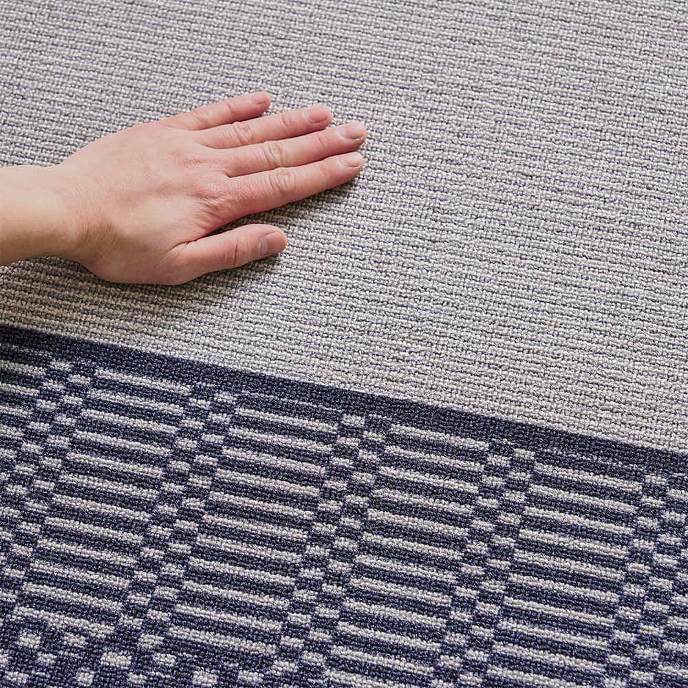 スクエア柄を基調としたデザインは、すっきりとした印象。一枚敷くだけで、お部屋がスタイリッシュな雰囲気に早変わりします。
