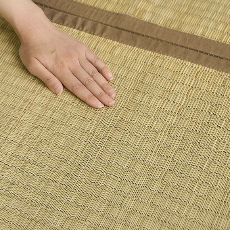 通常のい草よりも太くしなやかない草を使用したことで耐久性は折り紙付き。ヘリには麻混の綿素材を使用しており、シンプルながらも味わい深い風合いに仕上げました。見ても触っても心地よいい草ラグでお部屋の快適さをアップしてみませんか?