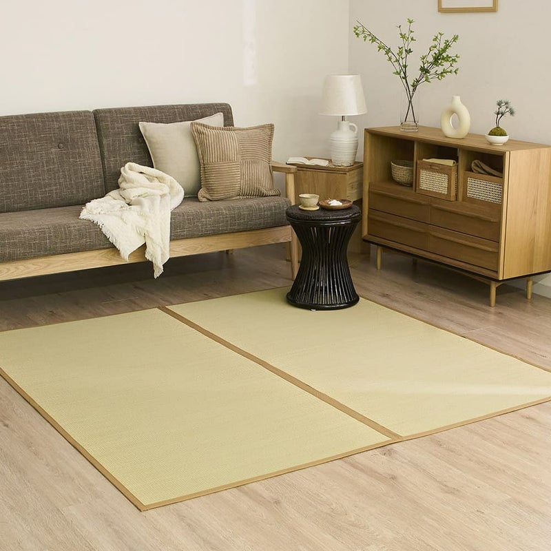 調湿効果が梅雨のじめじめ感を解消し、さらっとした肌触りが暑いお部屋の対策にも活躍するい草ラグ。