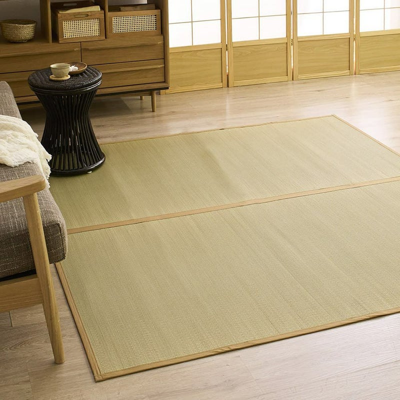 シンプルな作りで薄手軽量のい草ラグ。女性でも折りたたんで簡単に持ち運びができるので、敷くのはもちろん、収納時も扱いやすいという特徴があります。