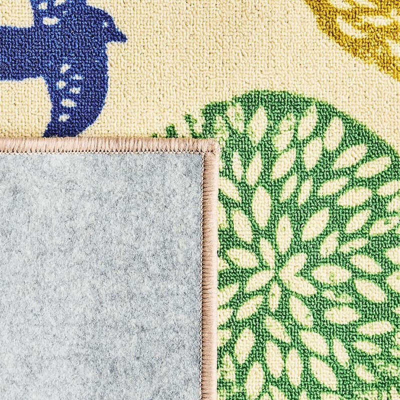 不織布で裏貼りしているので、フローリングの上で使用しても傷がつきにくく、賃貸住宅でも安心です。四隅にはタッセル付きのさりげないオシャレもポイントです。