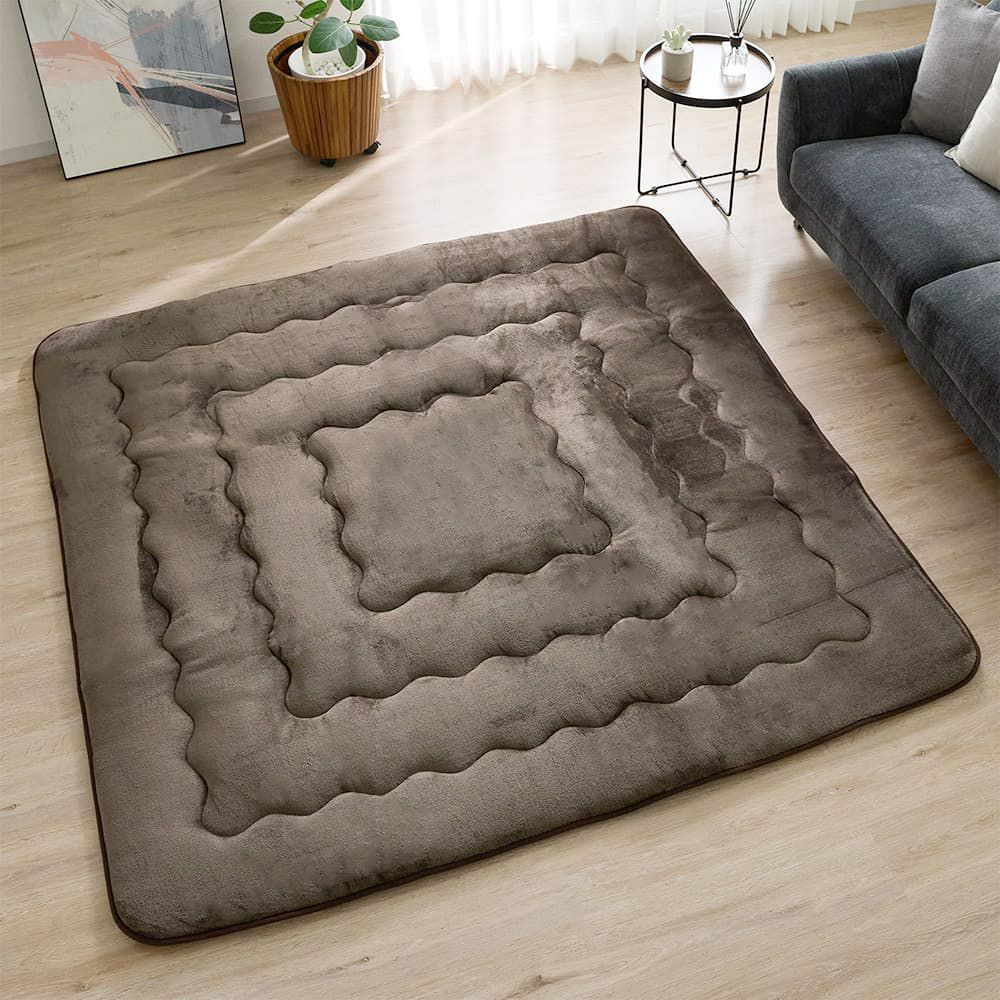 寒い冬の不快なひんやり感から、ふんわり守ってくれる肉厚のラグです。あたたかさの秘密は、6層構造!最下層は床面にも優しい不織布、ポリエチレンシートと固綿が冷えを防ぎ、表面側のアルミシート、ポリエステル綿、フランネルが人肌など上部からの熱を保温。こたつの敷布団としても重宝します。
