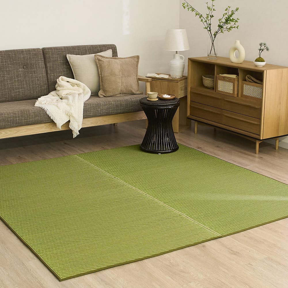 調湿効果が梅雨のじめじめ感を解消し、さらっとした肌触りが暑いお部屋の対策にも活躍するい草ラグ。