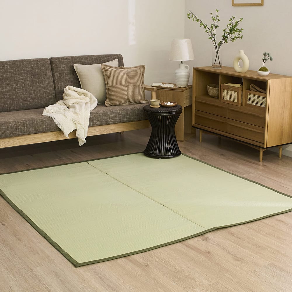 調湿効果が梅雨のじめじめ感を解消し、さらっとした肌触りが暑いお部屋の対策にも活躍するい草ラグ。