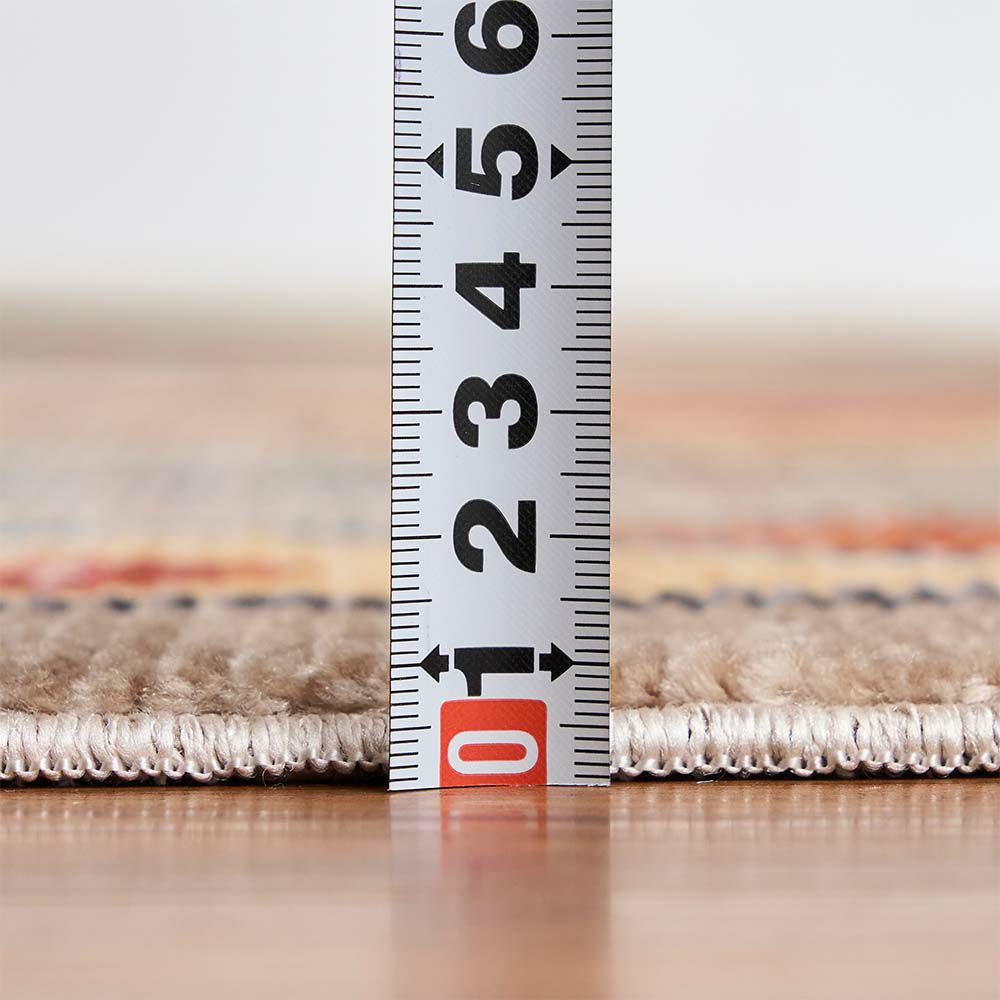 1本1本の糸をツイストさせることにより、ボリューム感をもたせる「フリーゼセット加工」。厚さ約10mmとしっかりとした厚みを出し、長時間踏みつけてもヘタリにくい弾力性のあるラグに仕上がっています。